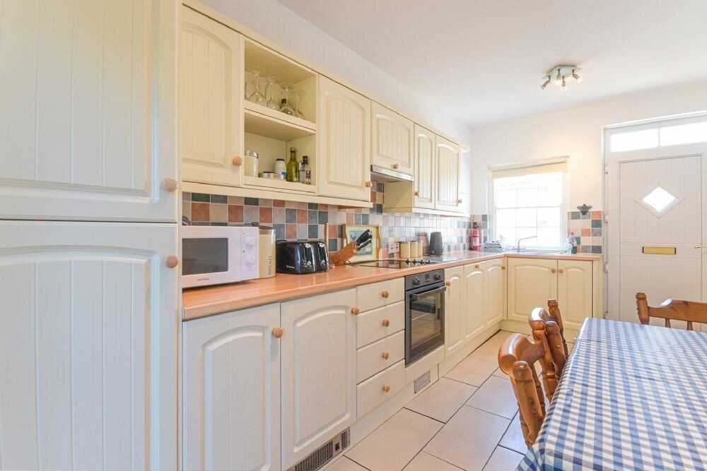 Amenities Night storage heaters with woodburning stove. Electric oven, ceramic hob, microwave, fridge, freezer, washing machine, dishwasher. 50 inch smart TV in lounge, TV in bedroom, DVD player, WiFi, selection of DVDs. Fuel and power inc. in rent. Bed linen and towels inc. in rent. Highchair and travel cot available on request. Off-road parking for 1 car. Enclosed garden with lawn and furniture. 4 well behaved dogs welcome. Sorry, no smoking. Shop 2.5 miles, pub 1.5 miles