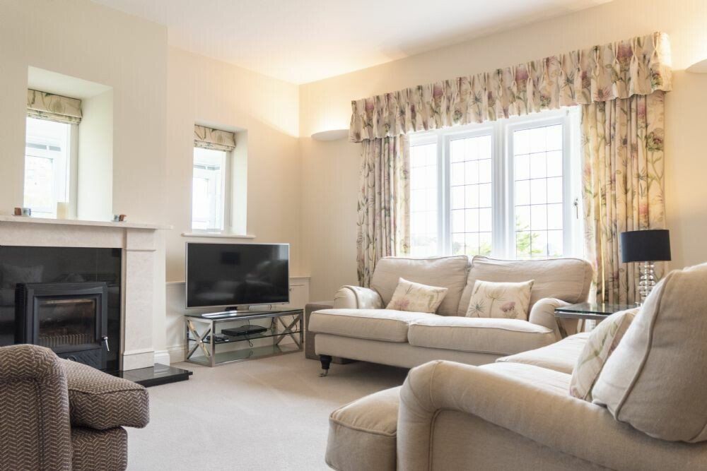 Living room/ balcony with Smart TV, cosy sofas and chairs leading to the balcony which has breath taking view of Bamburgh castle