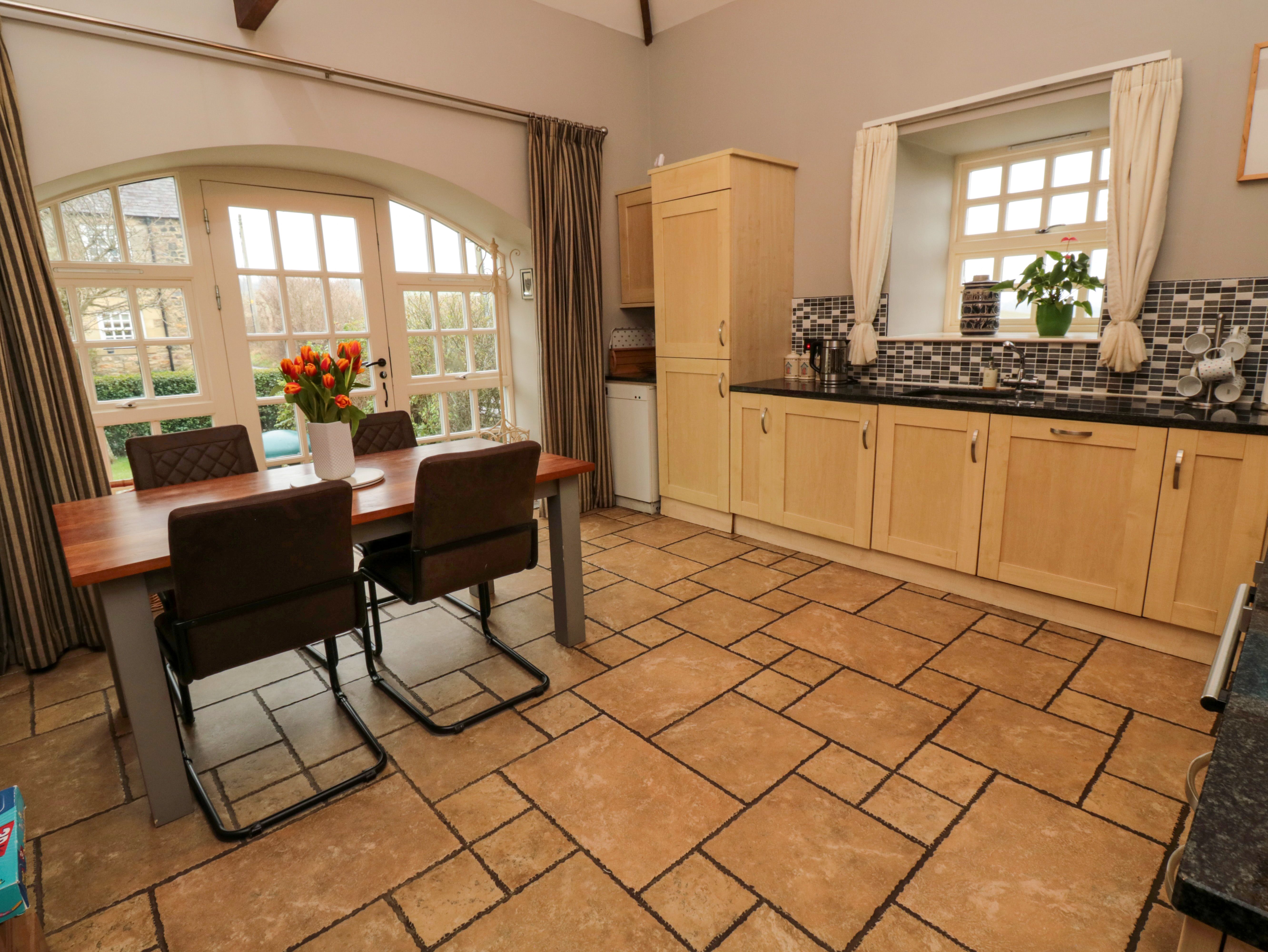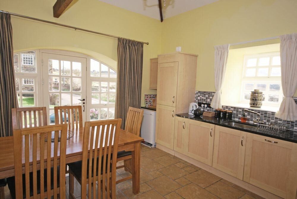 Amenities Oil heating. Electric oven, electric hob, microwave, fridge/freezer, washing machine, dishwasher. TV, DVD player, CD player, WiFi. Fuel, power and starter pack for woodburning stove inc. in rent. Bed linen and towels inc. in rent. Off-road parking for 2 cars. South facing non-enclosed patio and lawn garden with furniture. Two well behaved dogs welcome. Sorry, no smoking. Shop 1.8 miles, pub 0.7 miles