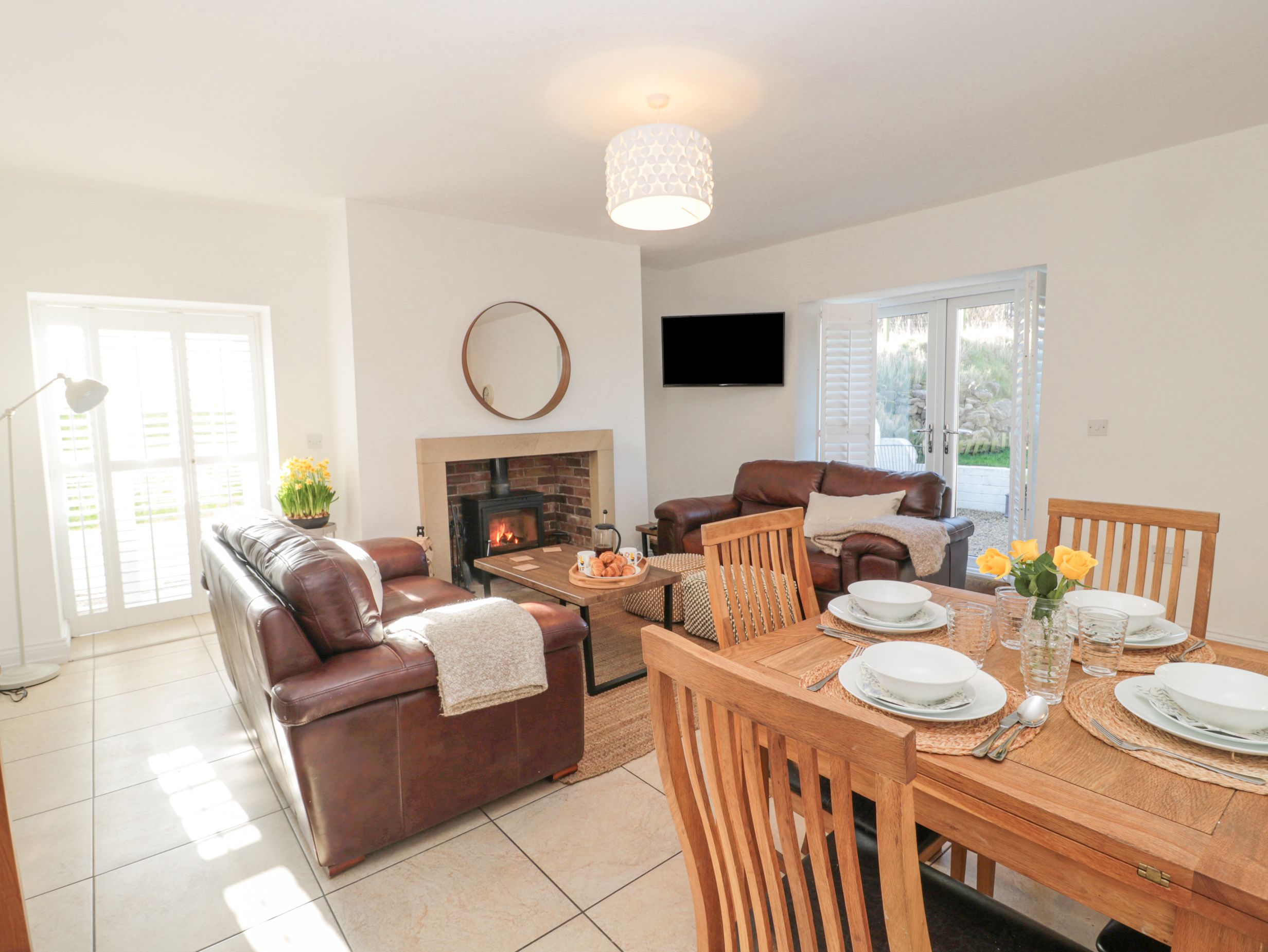 Accomodation Details Two bedrooms: 1 x king-size, 1 x twin. Bathroom with bath, shower over, basin, heated towel rail and WC. Reading nook. Open-plan living space with kitchen, dining and sitting area with woodburning stove. Hall/utility