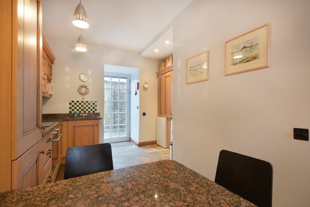 Kitchen/diner with electric oven and ceramic hob, dishwasher, fridge/freezer, microwave, washer/dryer and seating for 4 people.