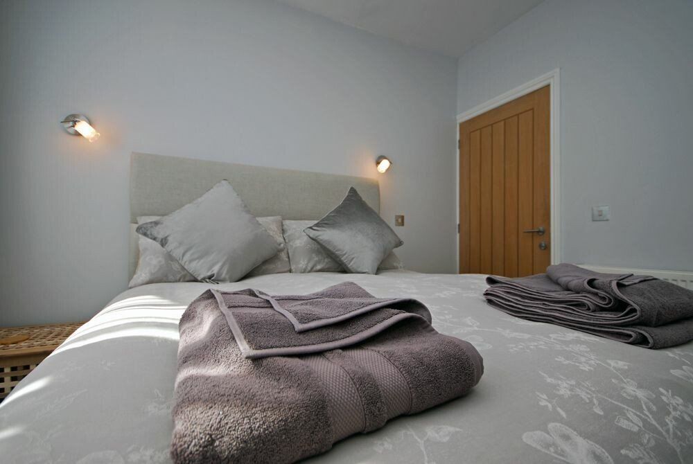 Accomodation Details Reverse living. Ground-floor king-size bedroom with en-suite with walk-in shower, basin and WC. First-floor open-plan living space with kitchen, dining area and sitting area