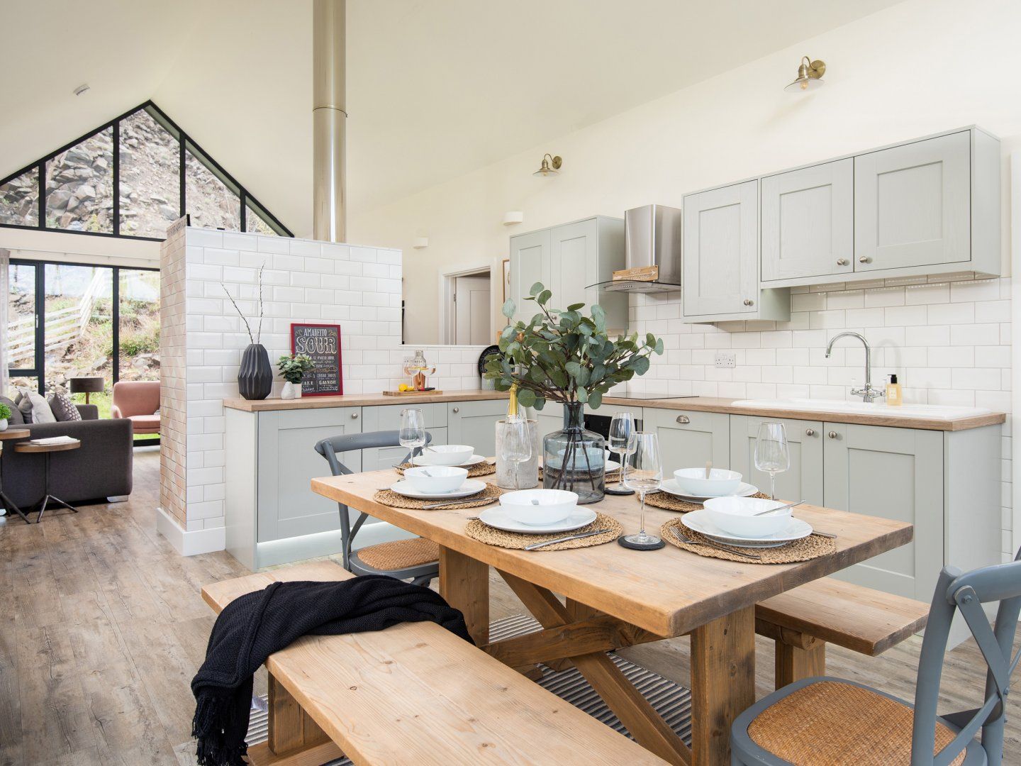 Accomodation Details Single-storey accomodation. Three bedrooms: 2 x king-size doubles (one with en-suite shower room with shower, basin and WC) and 1 x twin with TV. Bathroom with walk-in shower, basin and WC. Open-plan living space with kitchen, dining area and sitting area with woodburning stove