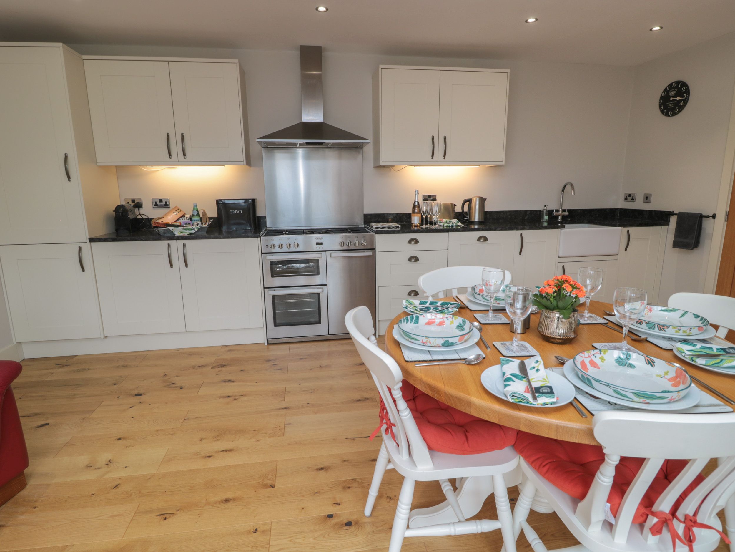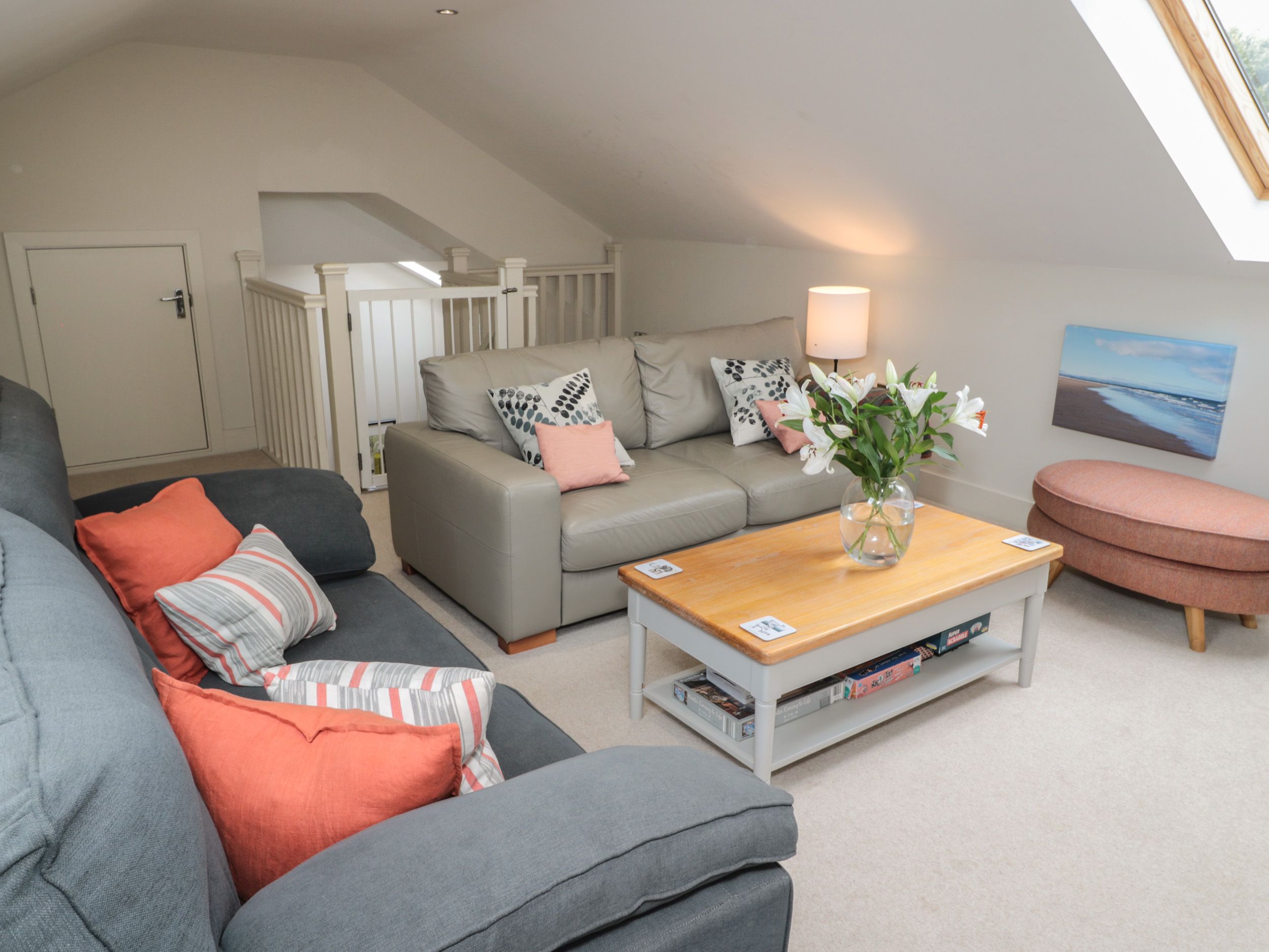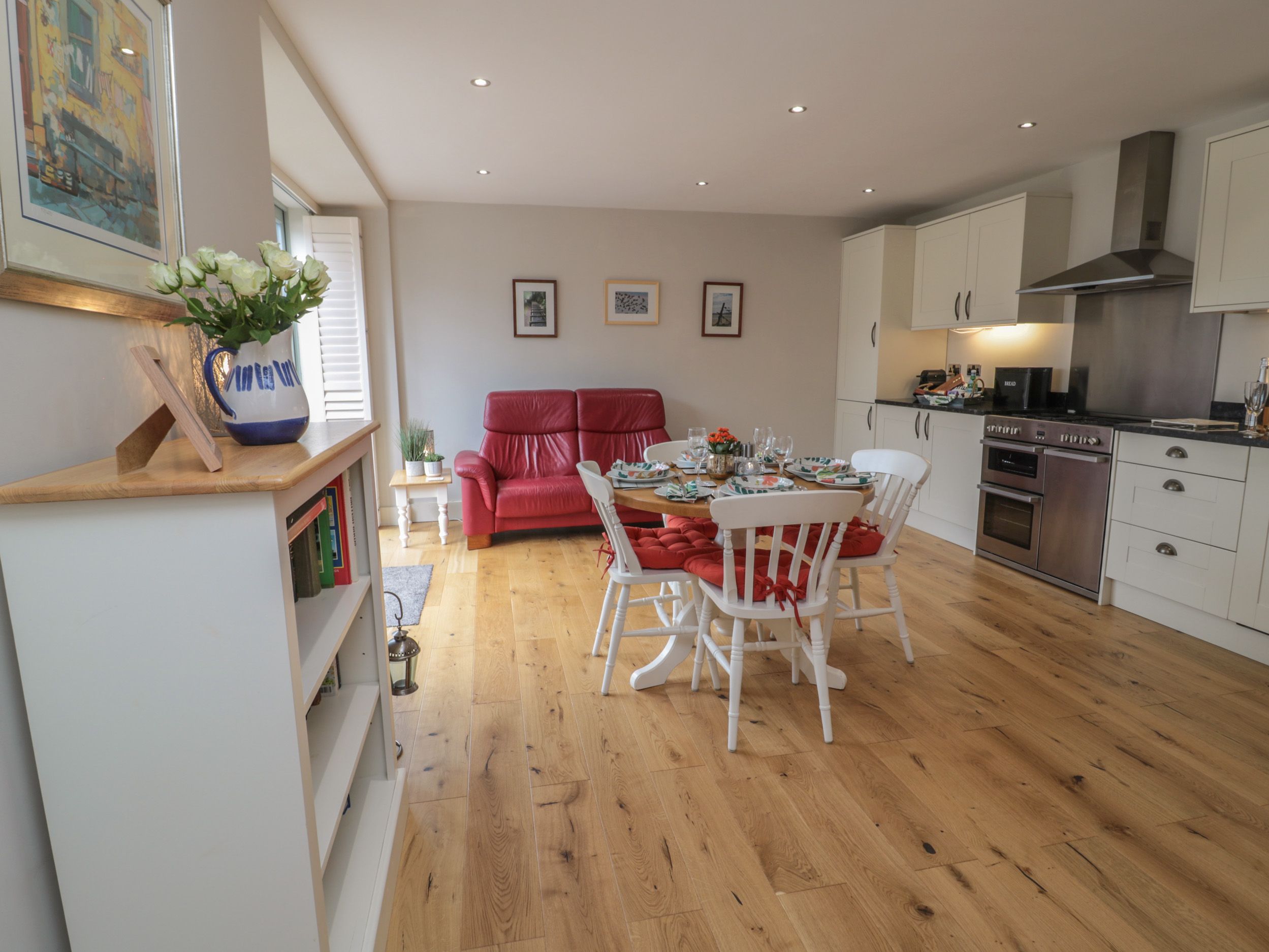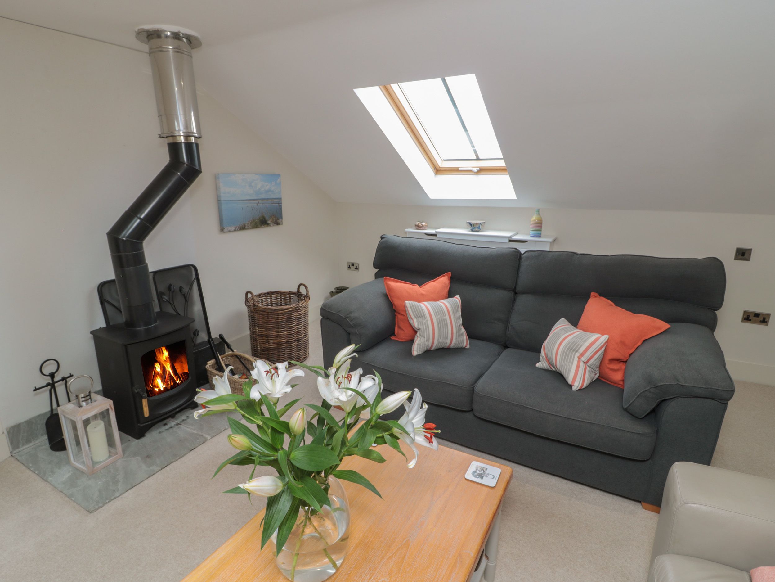 Accomodation Details Two bedrooms: 1 x double with en-suite walk-in shower, basin and WC, 1 x super king-size double (zip/link, can be twin on request). Bathroom with bath, shower over, basin and WC. Open-plan living area with kitchen, dining area and sitting area. Utility. First-floor sitting room with woodburning stove