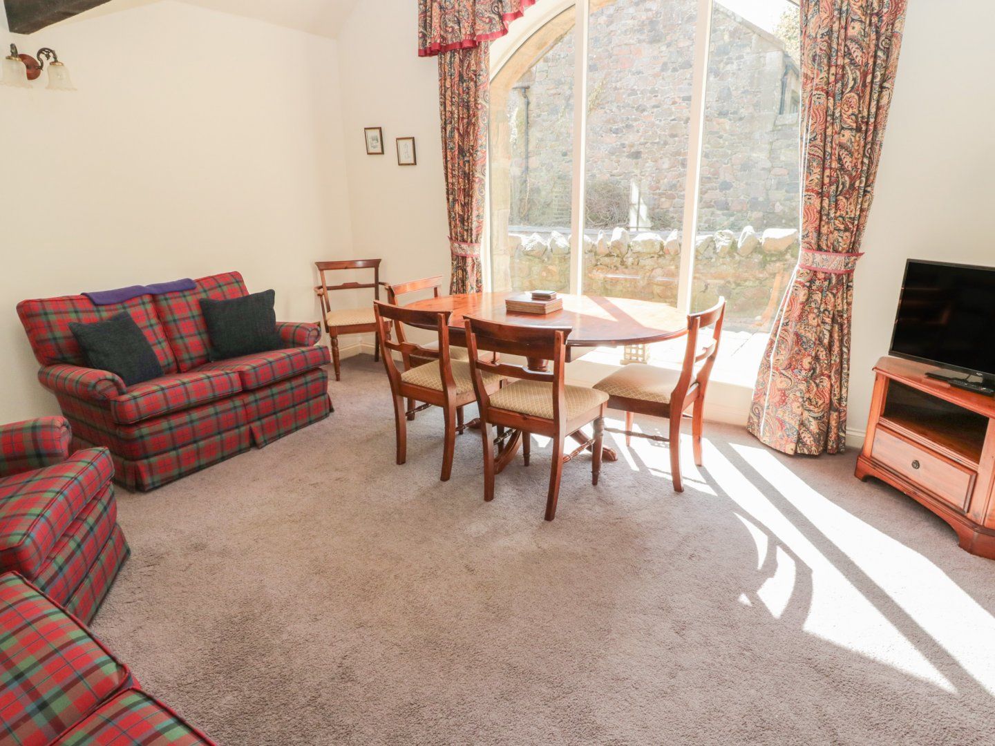 Amenities Electric central heating. Electric oven and hob, microwave, fridge/freezer, washing machine. 50 inch TV. Fuel and power inc. in rent. Bed linens inc. in rent. WIFI. Cot and highchair available on request. Off-road parking. Access to shared courtyard and seating area. Sorry, no pets and no smoking. Shop 2.6 miles, pub 2.3 miles. Note: Although there are no steps into the property, there are two steps from the hallway to the kitchen. Note: Minimum 3 night stay's. Note: There is no WiFi at this property. Note: Guests must provide their own towels.