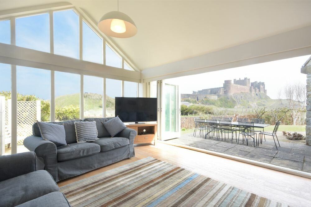 Second lounge with comfy sofas, Smart TV and views of Bamburgh Castle and the coastline.