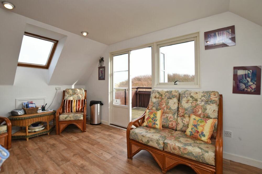 Accomodation Details Reverse level. Three ground-floor bedrooms: 1 x double with en-suite with walk-in shower, basin and WC, 1 x twin, 1 x bunk. Ground-floor bathroom with bath, shower over, basin and WC. First-floor kitchen. Ground-floor utility. First-floor sitting/dining area with veranda