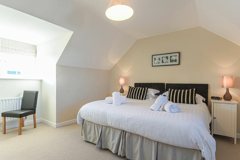 Set over three storeys. Three bedrooms: 1 x second-floor super-king-size, 1 x king-size with en-suite with shower, basin and WC, 1 x twin. Bathroom with bath, shower over, basin, heated towel rail and WC. Cloakroom with basin and WC. Open-plan living area with kitchen, dining area and sitting area