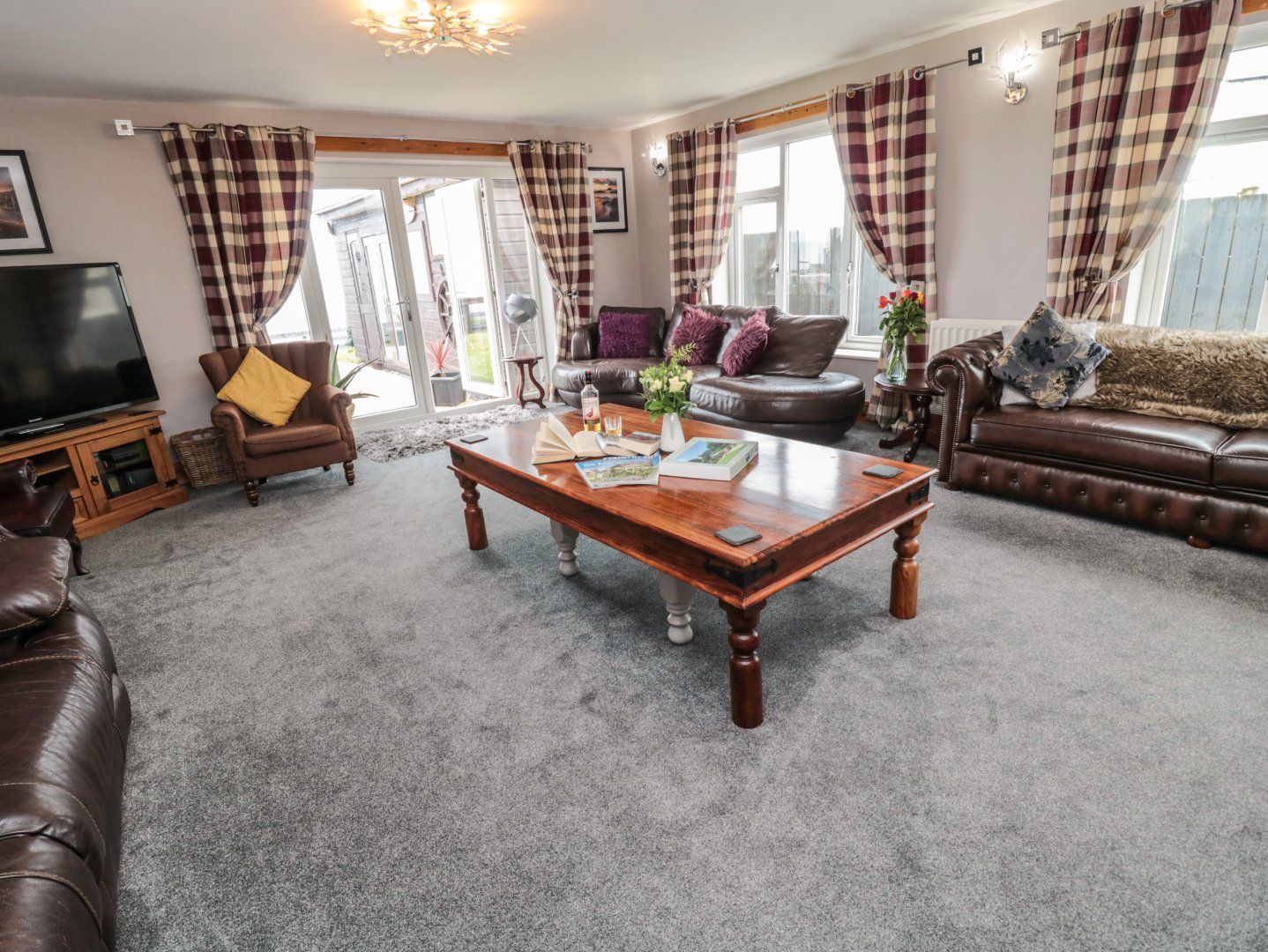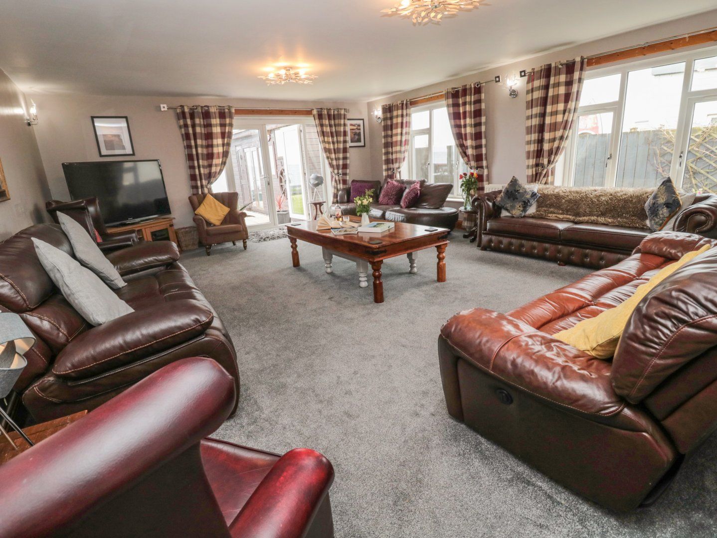 Six-bedrooms: 1 x ground-floor king-size with TV and en-suite walk-in shower, basin, heated towel rail and WC, 1 x king-size with sofa, 1 x ground-floor king-size with TV and en-suite walk-in shower, basin, heated towel rail and WC, 1 x double with en-suite walk-in shower, basin, heated towel rail and WC, 1 x ground-floor twin with TV and en-suite walk-in shower, basin, heated towel rail and WC, 1 x ground-floor family room with one king-size and two singles. Bathroom with bath, walk-in shower, basin, heated towel rail and WC. Cloakroom. Kitchen/diner. Sitting room