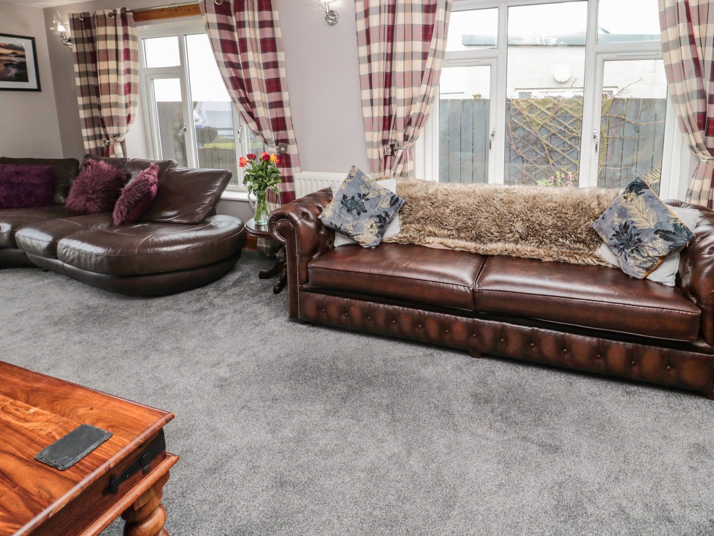 WiFi, fuel, power, linen and towels are all inc. Kitchen/diner with a Range cooker, electric oven and gas hob, microwave, fridge/freezer, dishwasher and dining area for 14 guests. Sitting room with TV. Bedrooms consist of a king-size with TV and en-suite shower room, a king-size with sofa, a king-size with TV and en-suite shower room, a double with en-suite shower room, a twin with TV and en-suite shower room and a family room with a king-size and two singles, along with a bathroom and cloakroom. Enclosed garden with lawn, furniture, BBQ and hot tub (hot tub supplement - 300 pounds sterling - please arrange this directly with the owner if wish to use it). Ample off-road parking. The hot tub will not reach full temperature on the first night of the stay. Two well-behaved dogs are welcome, additional dogs welcome at an extra charge at £50 per dog (please arrange directly with the owner), but sorry, no smoking. WiFi, fuel, power, bed linen and towels inc in the price. Sorry, no smoking. Please Note: It is a minimum 4 night stay at the property during the Christmas Period.