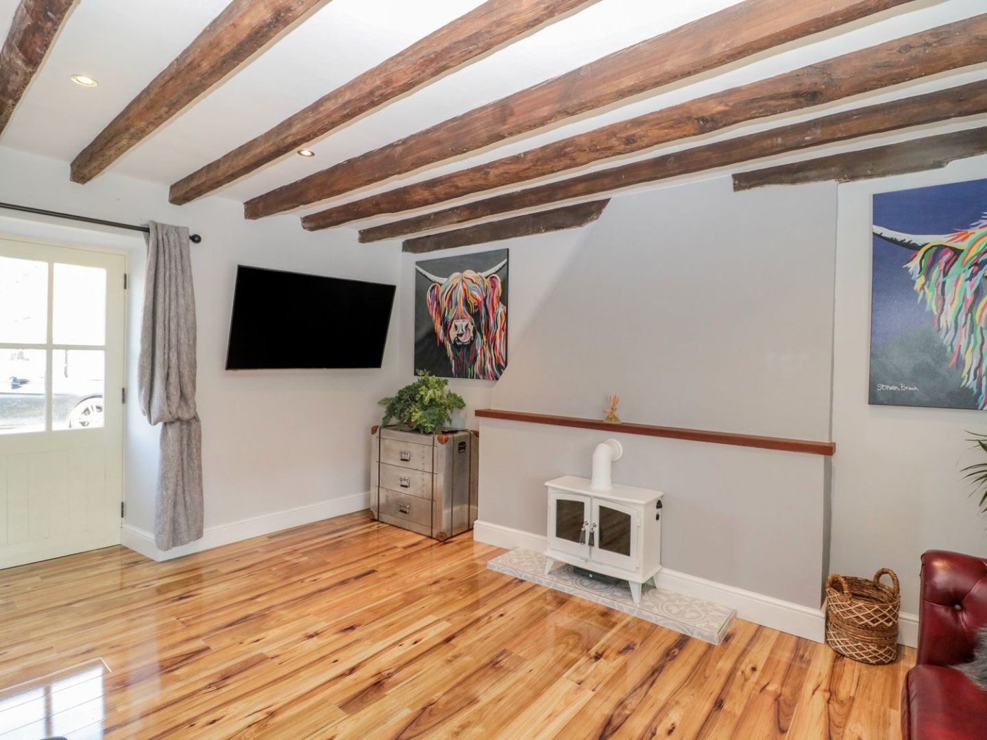 Amenities Electric central heating. Electric oven and hob, microwave, fridge/freezer and dishwasher. 2 x Smart TVs and WiFi. Fuel and power inc. in rent. Bed linen and towels inc. in rent. Off-road parking available. Front garden with patio and furniture, rear garden with lawn and furniture. One well-behaved dog welcome. Sorry, no smoking. Shop 0.4 miles, pub 0.1 miles and beach 1 miles