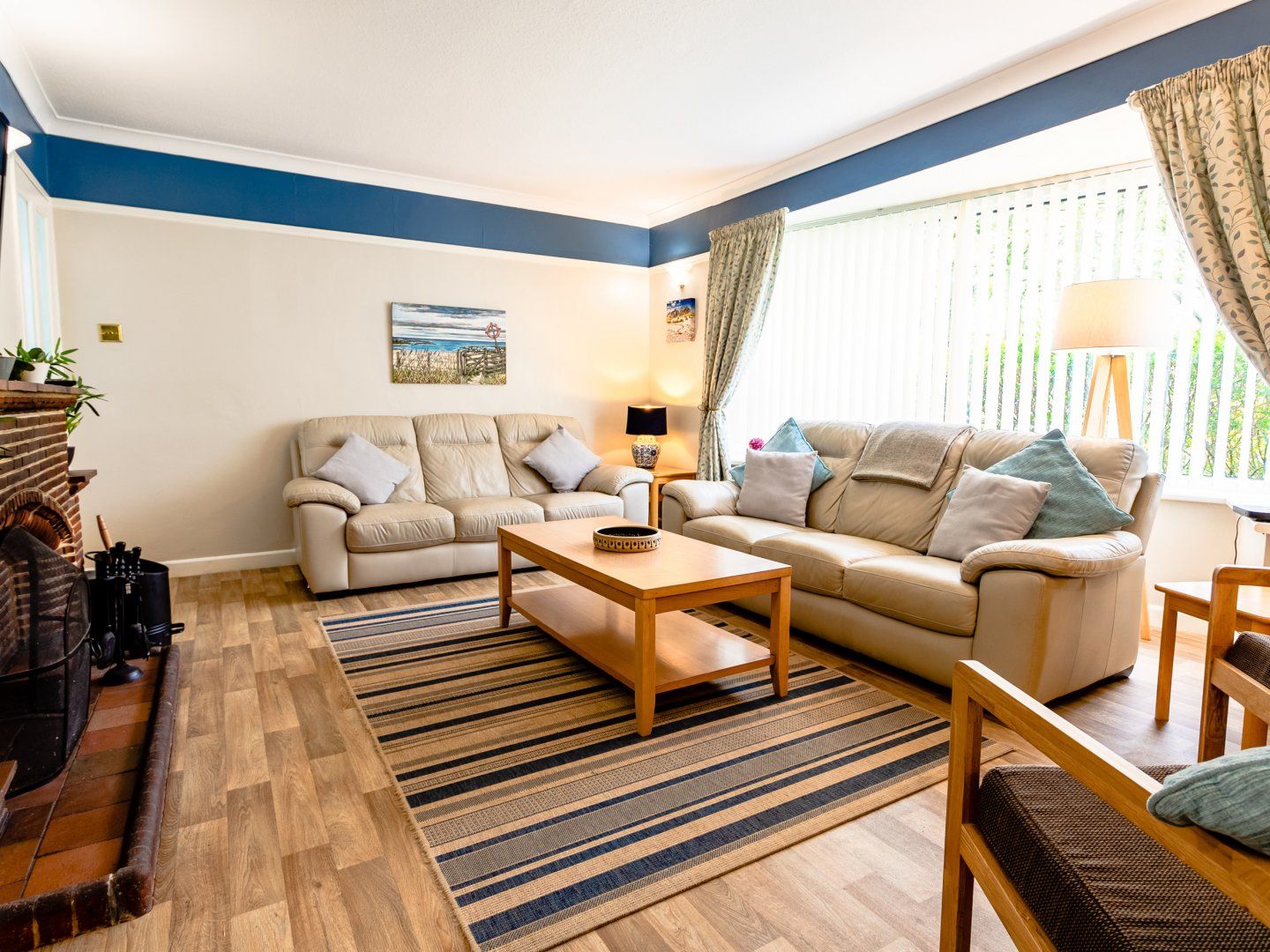 Accomodation Details Single-storey. Four bedrooms: 1 x super-king-size, 2 x double, 1 x twin. Bathroom with bath, shower over, basin and WC. Shower room with walk-in shower, basin and WC. Kitchen/diner. Sitting room with open fire. Conservatory