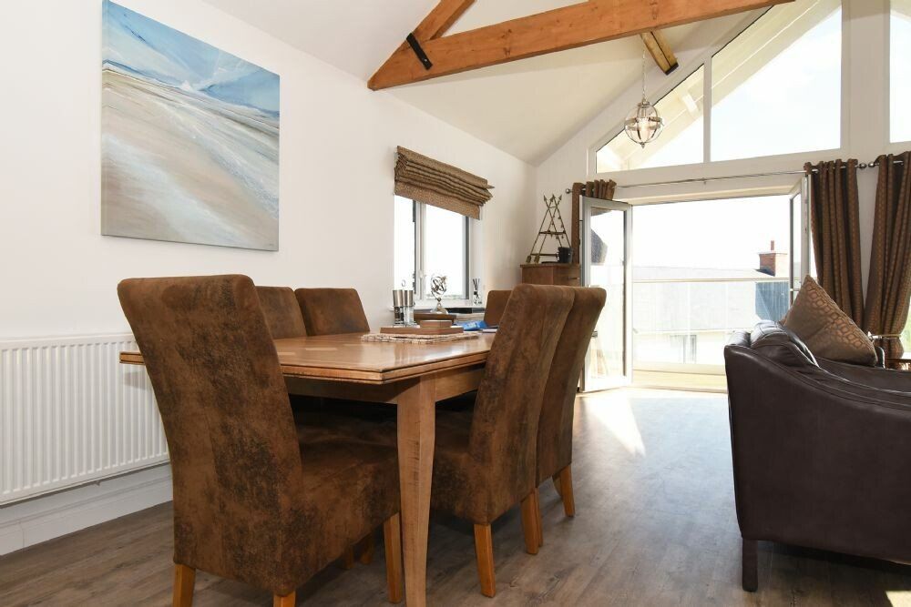 Accomodation Details Reverse living. Three ground-floor bedrooms: 1 x king-size with TV with en-suite with walk-in shower, basin, heated towel rail and WC, 1 x king-size with TV, 1 x twin with TV. Ground-floor bathroom with bath, walk-in shower, basin, heated towel rail and WC. First-floor open-plan living space with kitchen, dining area and sitting area. Utility. Cloakroom with basin and WC