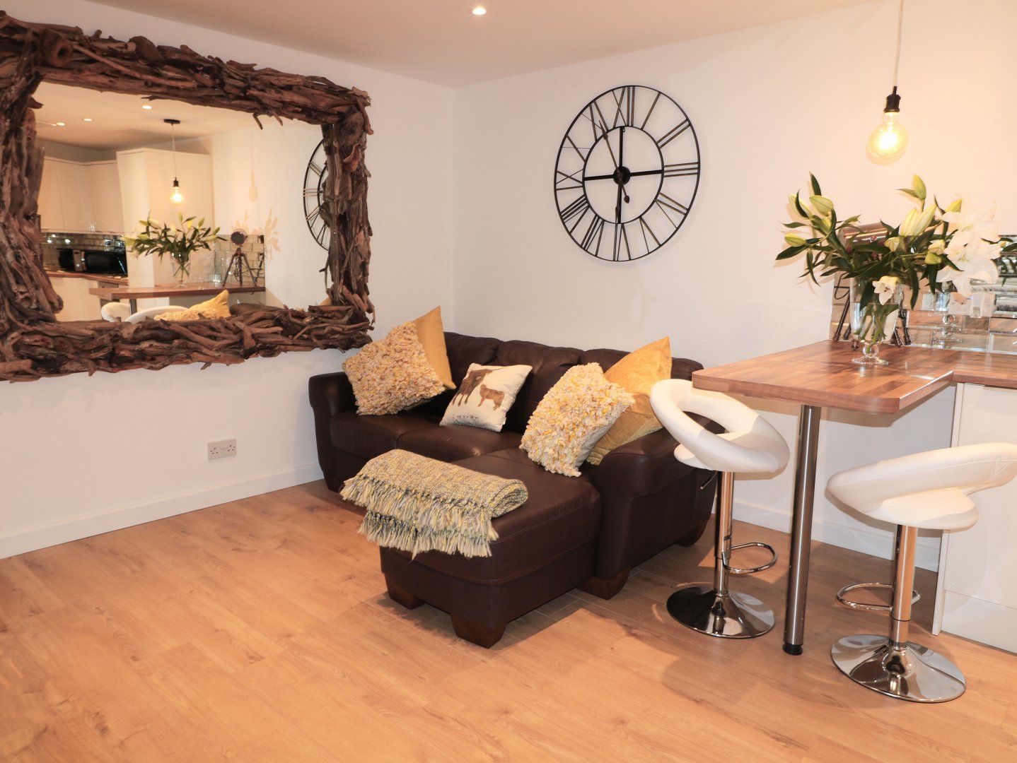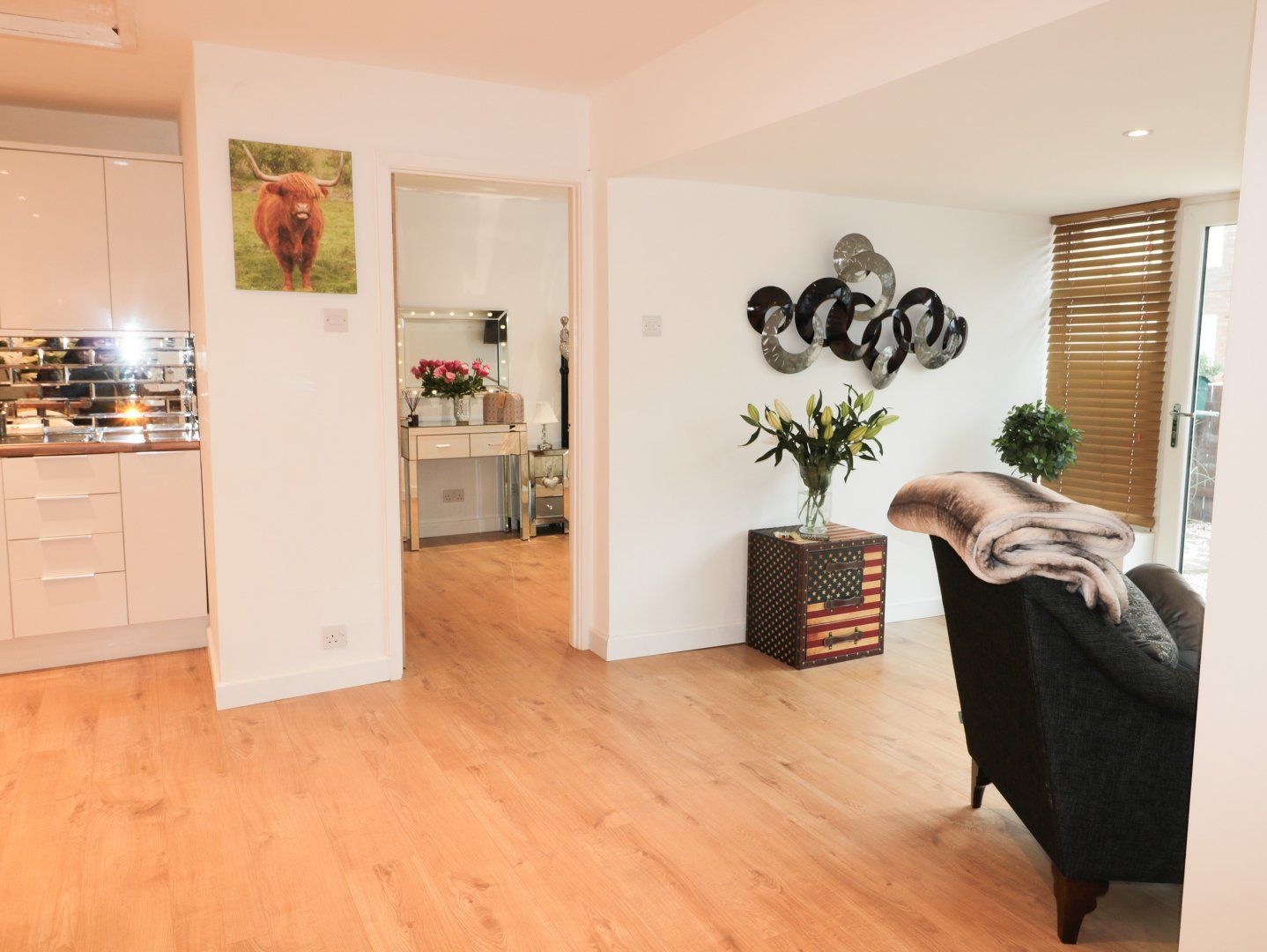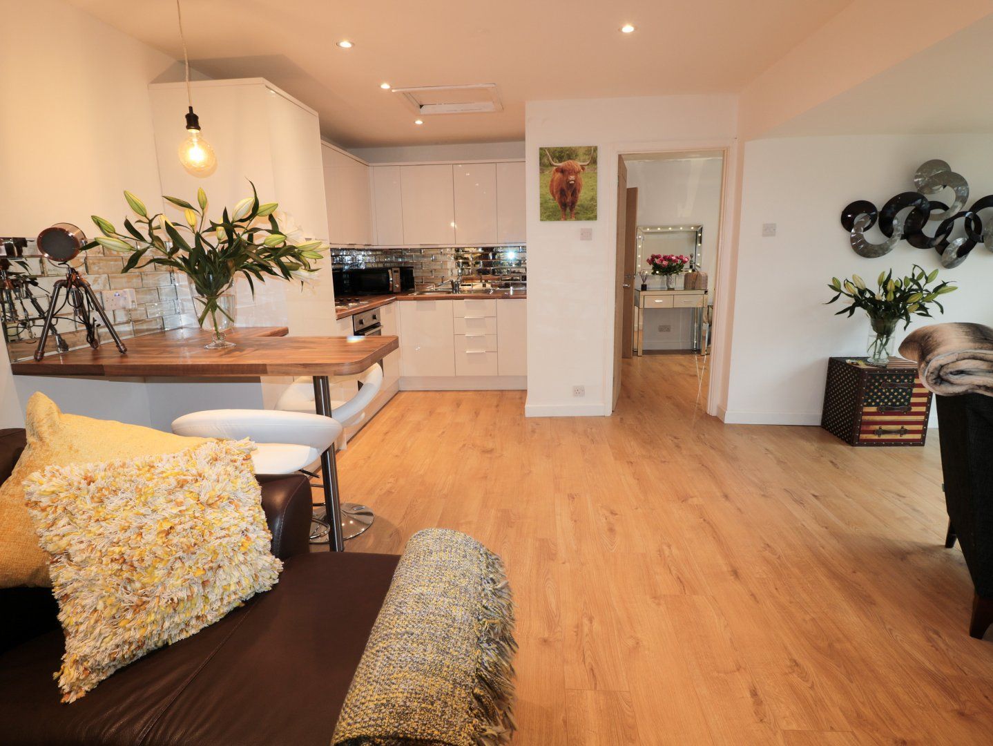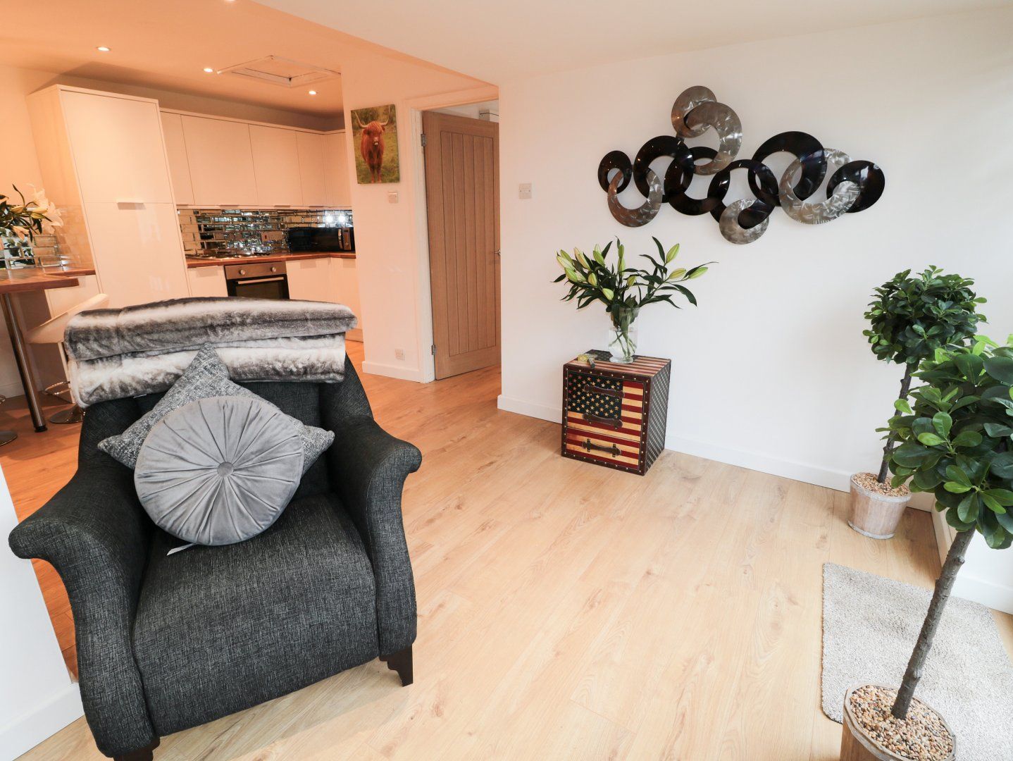 Accomodation Details All-ground-floor. One bedroom with double bed, TV and en-suite walk-in shower, basin, heated towel rail and WC. Open-plan living space with kitchen, dining area and sitting area