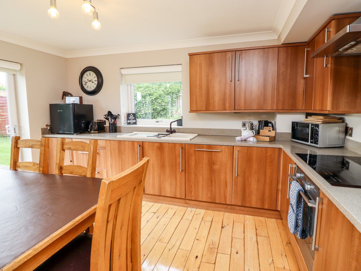 Amenities Oil central heating. Electric oven and grill, induction hob, microwave, fridge, freezer, washing machine, dishwasher. Smart TV, DVD/Blu-Ray player, WiFi. Fuel and power inc. in rent. Bed linen and towels inc. in rent. Private parking for 2 cars. Enclosed gardens with lawns, patio area, patio furniture, storage for bikes. Two well-behaved dogs welcome. Sorry, no smoking. Shop 0.2 miles, pub 0.4 miles, beach 0.8 miles