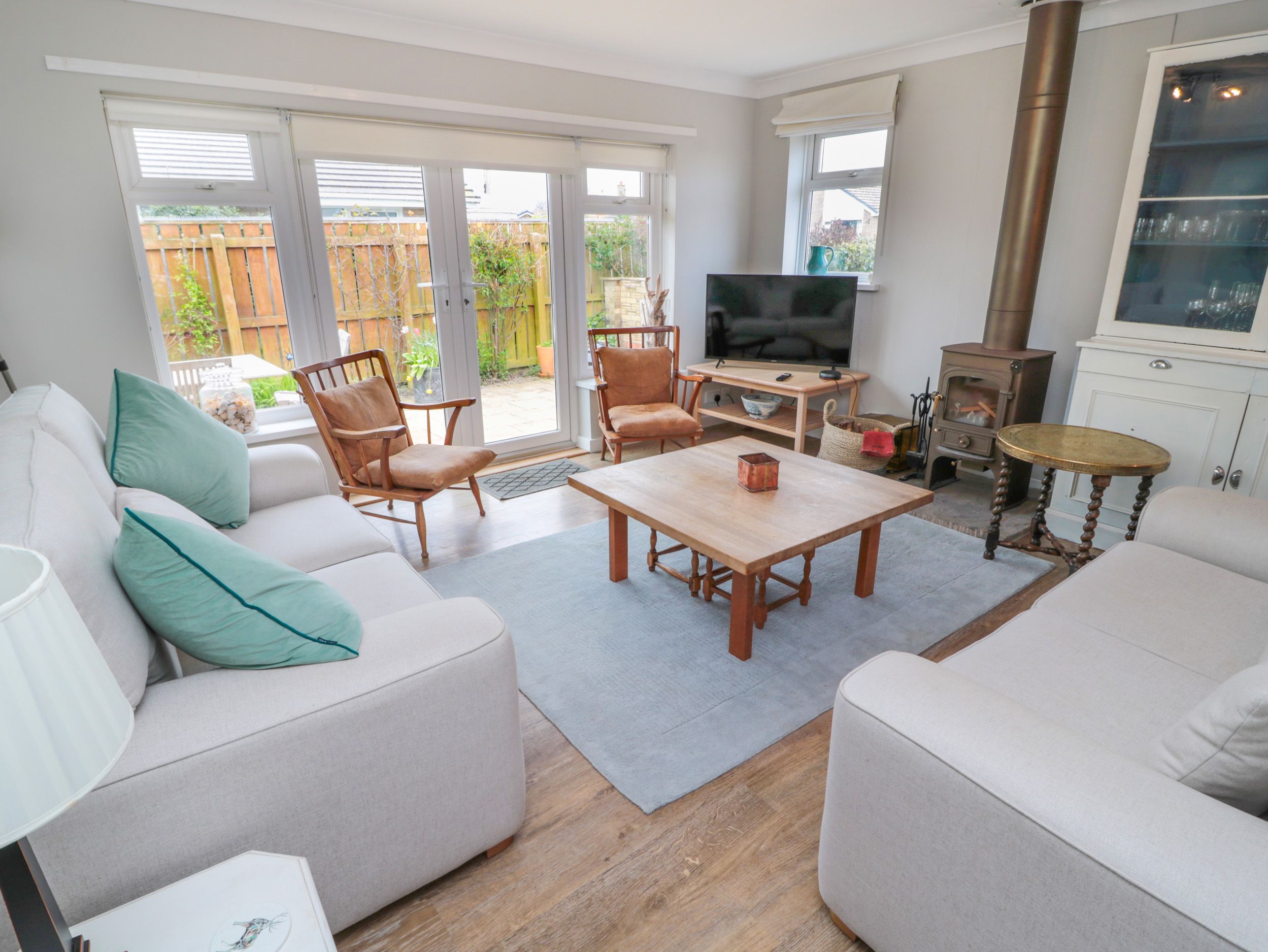 Central heating. Electric oven and hob, microwave, washing machine, dishwasher, kettle, toaster. 2 x TV, WiFi, selection of books. Fuel and power inc. in rent. Bed linen and towels inc. in rent. Off-road parking for 2 cars. Wrap-around enclosed gardens with patio and furniture. Sorry, no smoking or vaping, and no pets. Shop and beach 0.1 miles, pub 0.4 miles. Note: No children under 4 years old. Note: Check-in 4pm, check-out 10am. Note: There are 2 steps at the front and at the back of property and one step to get into one bedroom. Note: No charging electric vehicles at the property