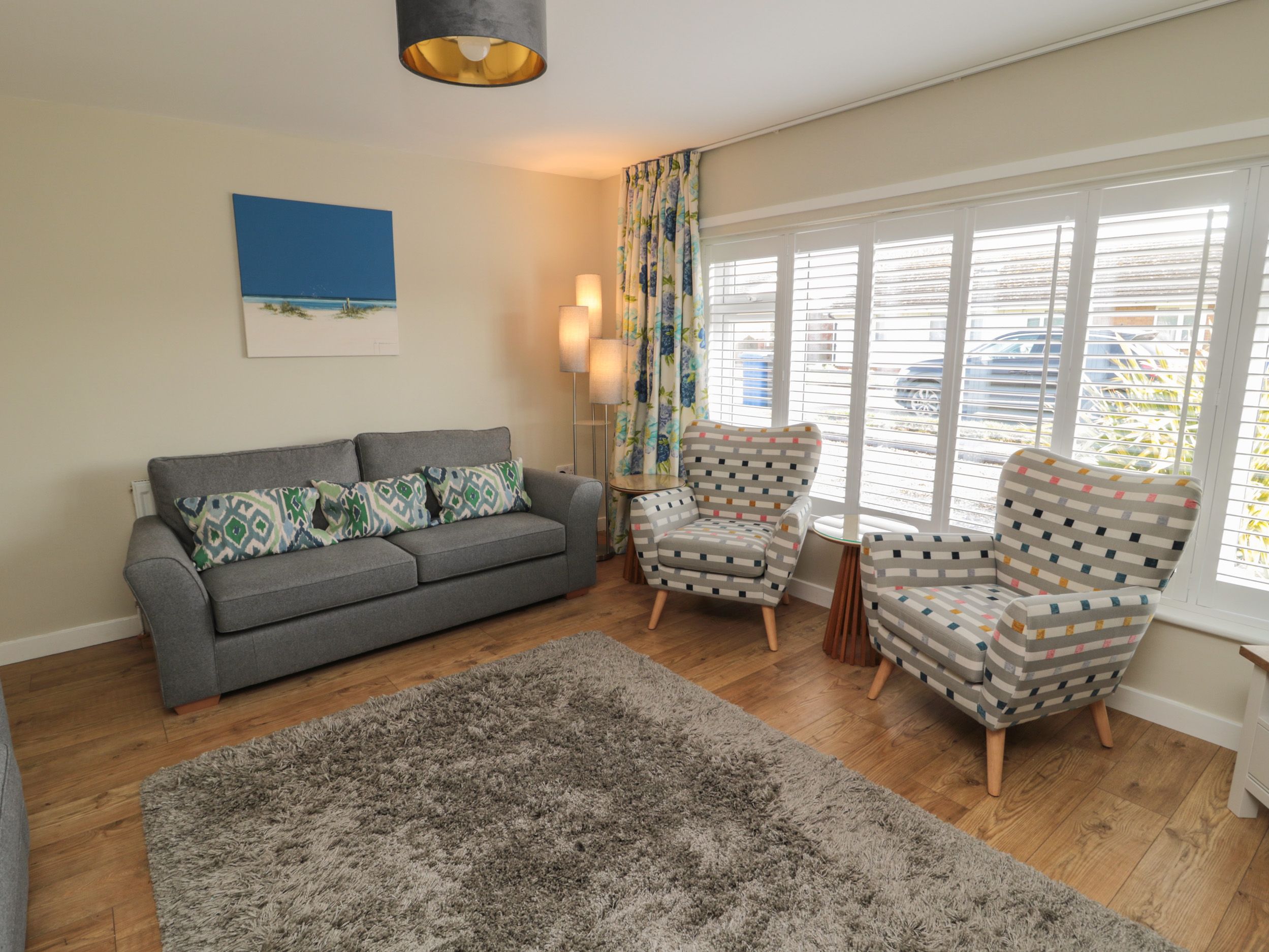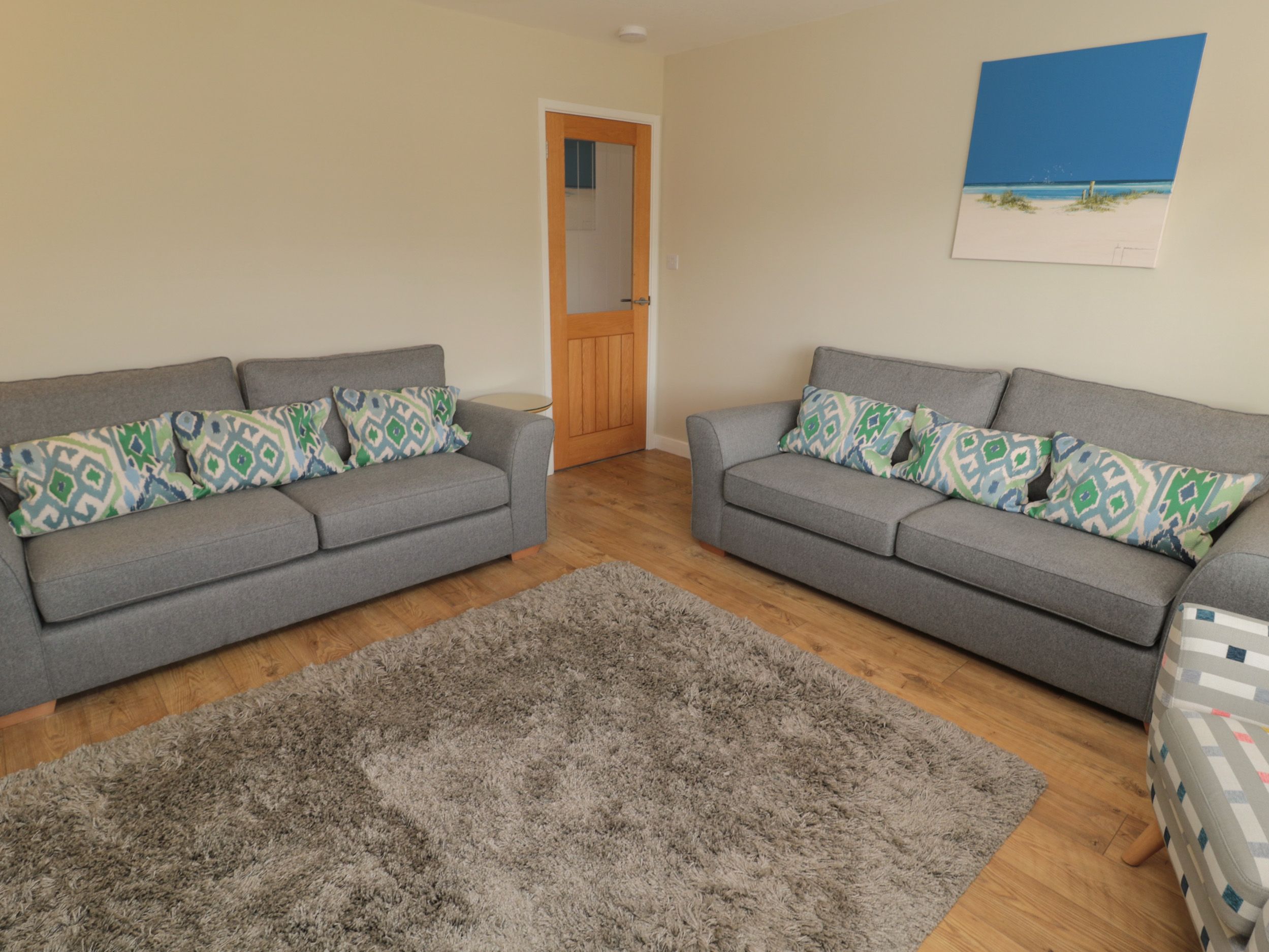 Accomodation Details Single-storey detatched bungalow. Three bedrooms: 1 x king-size with TV and en-suite walk-in shower, basin, heated towel rail and WC, 1 x king-size, 1 x twin. Bathroom with bath, shower over, basin, heated towel rail and WC. Kitchen/diner. Utility with basin. Sitting room with Smart TV and woodburning stove