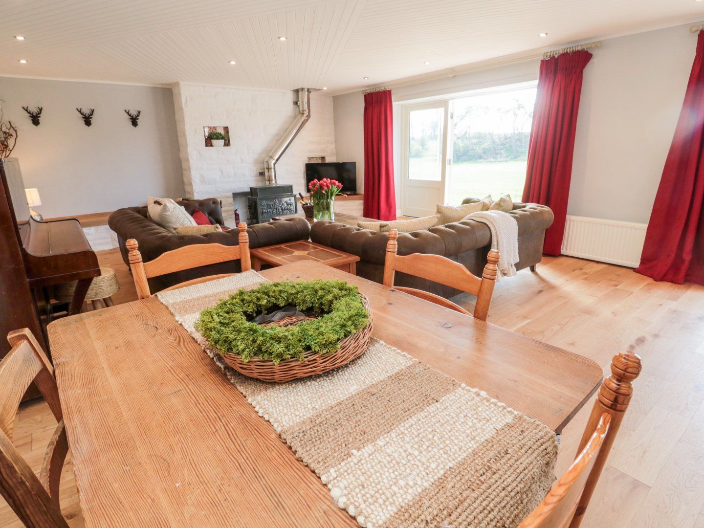 Four bedrooms: 1 x king-size, 1 x twin (ziplink), 2 x doubles. Bathroom with freestanding bath, walk-in shower, basin, heated towel rail and WC. Shower room with walk-in shower, basin, heated towel rail and WC. Cloakroom with basin, heated towel rail and WC. Kitchen/diner. Utility. Sitting room with wood burning stove
