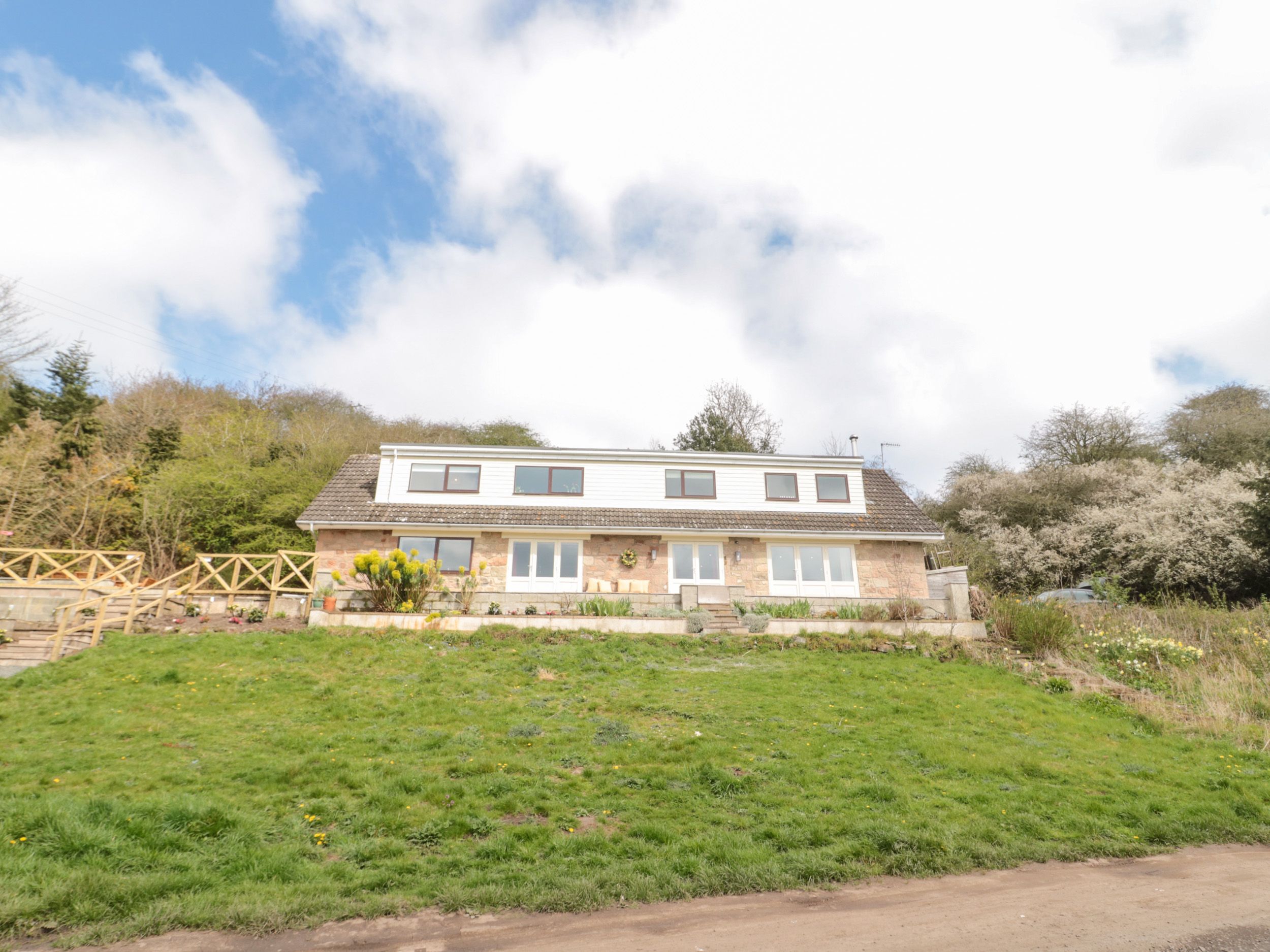 This home consists of a kitchen/diner, a utility and a sitting room. Appliances include an electric double oven and induction hob, microwave, fridge/freezer, washing machine, tumble dryer, dishwasher, Smart TV and multi-fuel stove. The bedrooms consist of two king-sizes, one of which is a zip/link can be a twin on request, and two doubles, serviced by a bathroom and shower room. Outside, there is a multi-level garden with flagstone patio and furniture, along with off-road parking for five cars. Within 2.6 miles, you will find the nearest shop, and within 1.9 miles, a pub. Two well-behaved dog welcomed, but sorry, no smoking. WiFi, fuel, power, starter pack for multi-fuel stove, bed linen, and towels are all included in the rent. Highchair, travel cot and stairgate available on request. Bring the whole family for a memorable stay at Whiteadder Bank. Note: Low wall surrounding property, with steep drop – please ensure children are always supervised. Note: The garden is not enclosed.