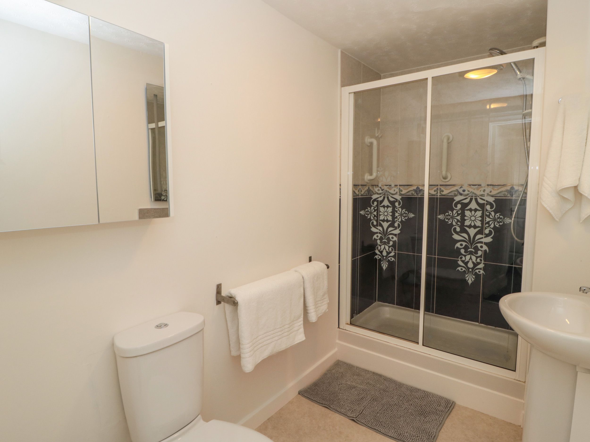 Accomodation Details Two bedrooms: 1 x king-size with TV, 1 x ground-floor double with TV. Shower room with walk-in shower, basin and WC. Kitchen/diner. Sitting room