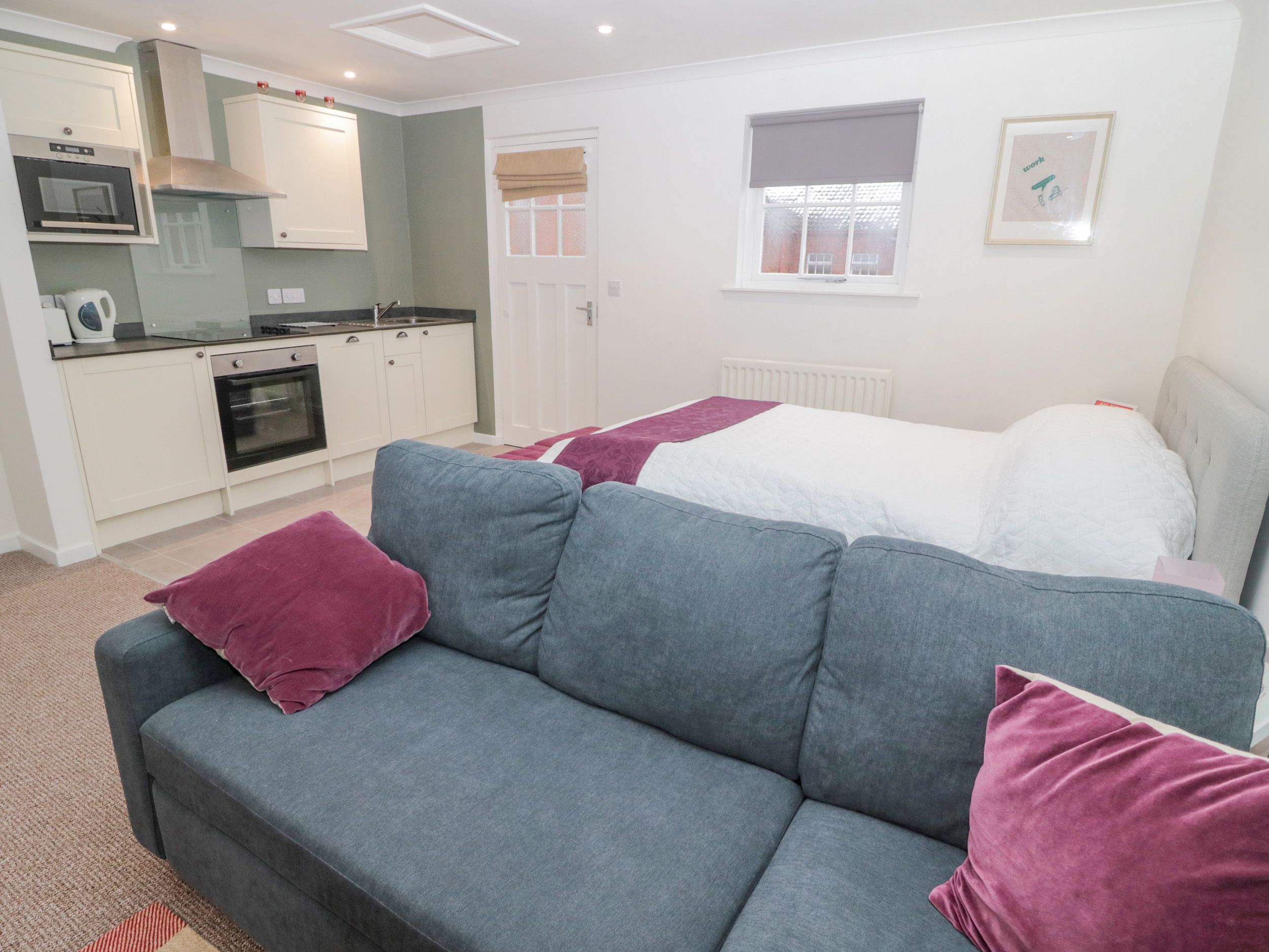 The living areas in the property consist of an open-plan, studio-style living area with a kitchen with electric oven, induction hob, microwave, fridge/freezer, washing machine, dishwasher, dining seating for two, and a sitting area with Smart TV with Freeview and a double bed. There is a bathroom with bath, shower over, basin and WC. Outside, there is shared access to grounds with gravel, lawn, paddocks and seating, as well as off-road parking for one car. Within 2.6 miles, you will find a shop, and within 0.3 miles, a pub, and please note that this is a non-smoking property. WiFi, fuel, power, bed linen and towels are all included in the price. Two well-behaved pets welcome. Cherry Studio provides an exceptional escape to Northumberland. Please note; the 2 acres of land are shared with several private areas and may contain sheep and chickens.
