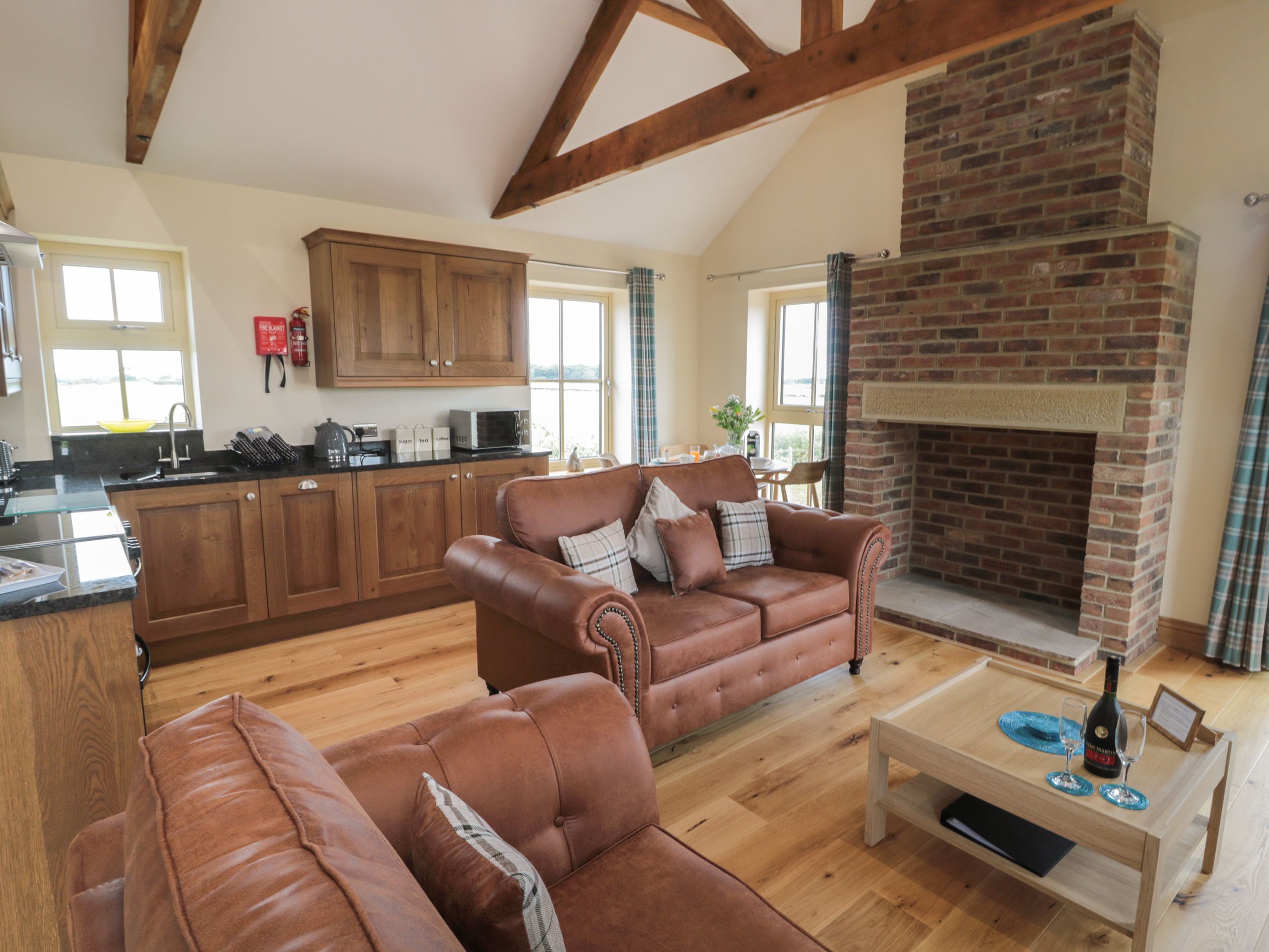 Central heating. Electric oven and hob, microwave, fridge/freezer, washing machine, slimline dishwasher. Smart TV and WiFi. Fuel and power inc. in rent. Bed linen and towels inc. in rent. EV charger onsite. Off-road parking available. Garden with lawn, patio, furniture, and hot tub. Note: The swimming pool is available for all guests staying in our 13 cottages and 4 apartments. Guests must go to the pool entrance area to sign up for the swimming slots they would like to use, using their property name. Each stay is allocated a number of slots, 7 night stay - 5 slots, 5 night stay - 3 slots, 3 night stay - 2 slots. The same time slot is not available to each property each day. This property accepts a 7 night minimum stay from a Friday. Sorry, no smoking. Shop and pub 0.7 miles, beach 1.6 miles. Note: Ramp access into property available. Note: There are steps in the garden, please take care. This property has bedroom window fire escapes, by booking this property you are confirming in the event of a fire you will be able to use them