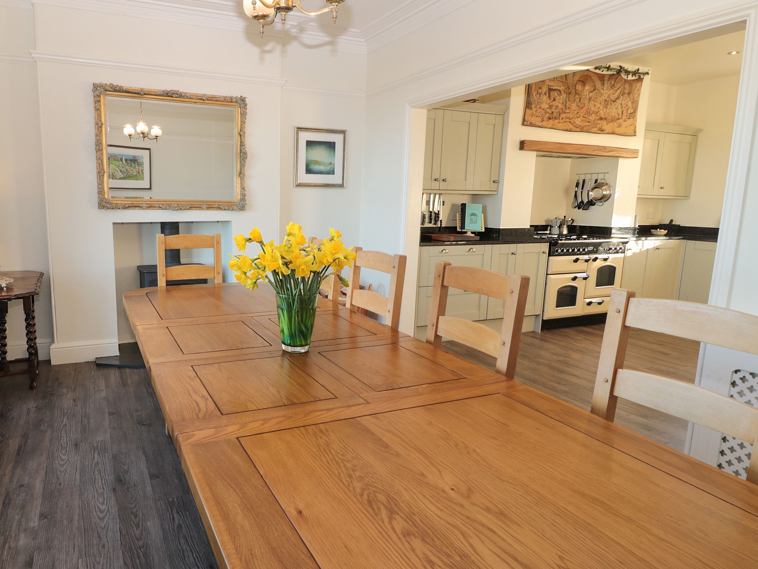 Amenities Please Note: Check in Day is a Friday. Oil fired central heating and 2 x woodburning stove. Range cooker with double electric oven and hob, microwave, fridge/freezer, dishwasher, washing machine, tumble dryer, TV with Sky Sports and Sky Cinema, Smart TV with Freeview, Xbox, Nintendo Wii, DVD player, surround-sound speakers, Superfast WiFi and a selection of books and DVDs. Fuel, power and starter pack for stoves inc. in rent. Bed linen and towels inc. in rent. Travel cot, highchair and stairgate available. Off-road parking for three cars. Multi-level garden with lawn and patio areas with furniture, barbecue and table tennis. Two well-behaved dogs welcome. Sorry, no smoking. Shop and pub 0.2 miles, beach 0.5 miles. Note: Dogs are permitted on the ground floor only. Note - New Fire regulations stipulate that the adjoining playroom in the family bedroom can no longer be used as a bedroom. Do not leave children in this room unattended with the door closed in case of fire. Up to two additional children under 10 can stay in the property but own bedding must be provided. The foam z beds in the playroom can be moved anywhere in the house to facilitate this. Note: Sorry, no stag/hen parties. Please note: Electric car charging is not allowed at this property, there are 2 charging points at the top of the road in the village. Please note: this property has a minimum of 3 night stays. Please note: In the peak periods of Easter, July and August, this property only accepts 7 night bookings. Please note: Check in day is a Friday only