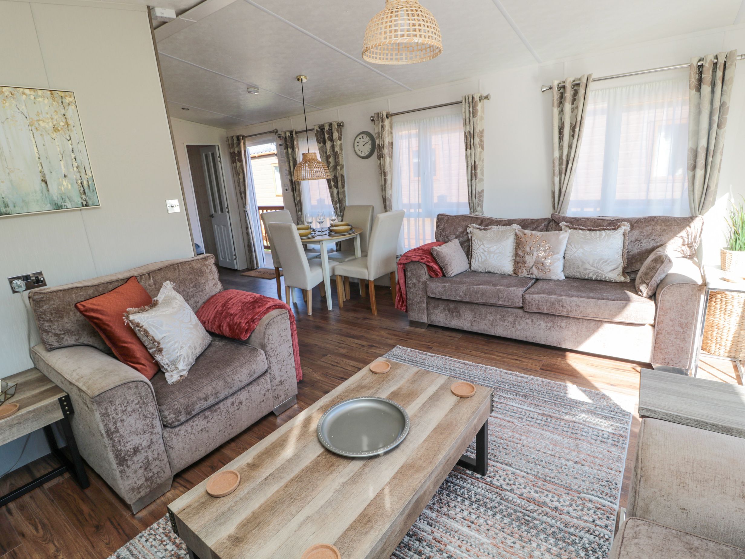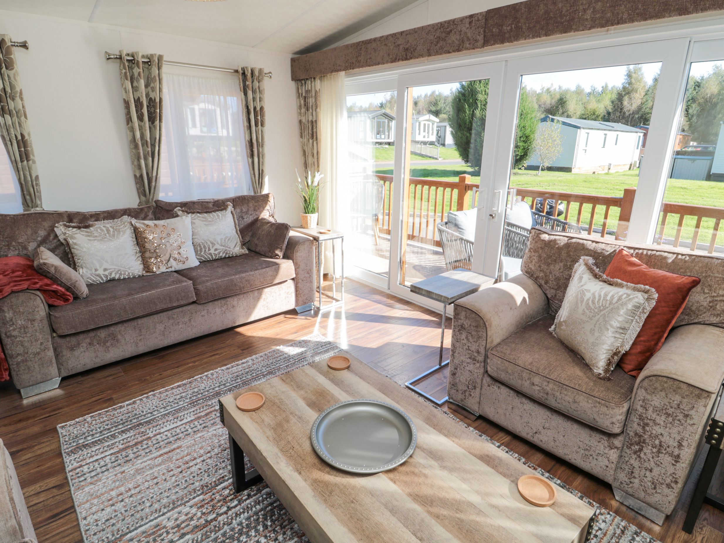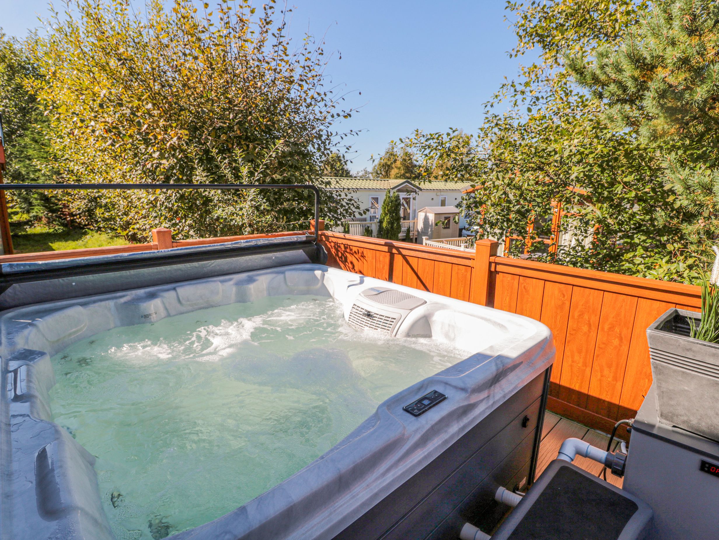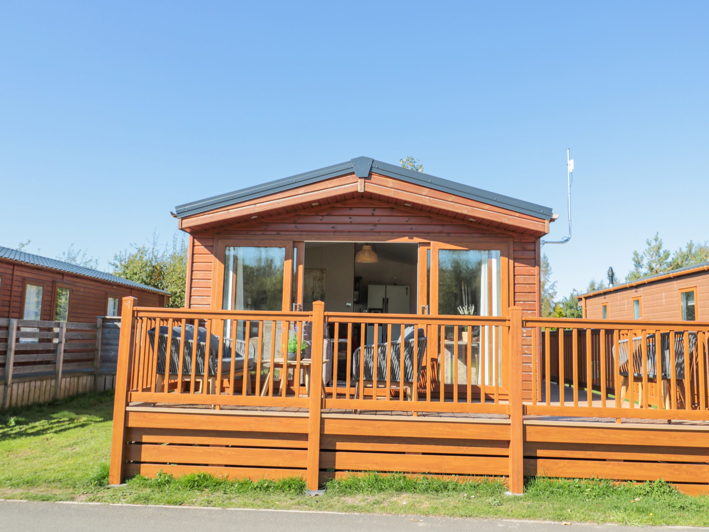 Amenities Gas central heating. Electric oven, gas hob, microwave, fridge/freezer, washing machine, dishwasher, kettle, toaster. TV, WiFi. Fuel and power inc. in rent. Bed linen and towels inc. in rent. Off-road parking for 1 car. Enclosed decking with furniture and hot tub. Pet-friendly. Sorry, no smoking. Note: There is a games room on site including pool table, darts, laser shooting alley (local supplement may apply), and a children's playground. Shop 3.6 miles, pub 1.2 miles. Note: There is a lake located nearby, please ensure children are supervised at all times. Note: On-site facilities now include a shop, breakfast café, a large bar offering cocktails with restaurant offering lunch and evening meals and a dedicated area for guests who are dining accompanied by their pets. Note: Steps to the exterior