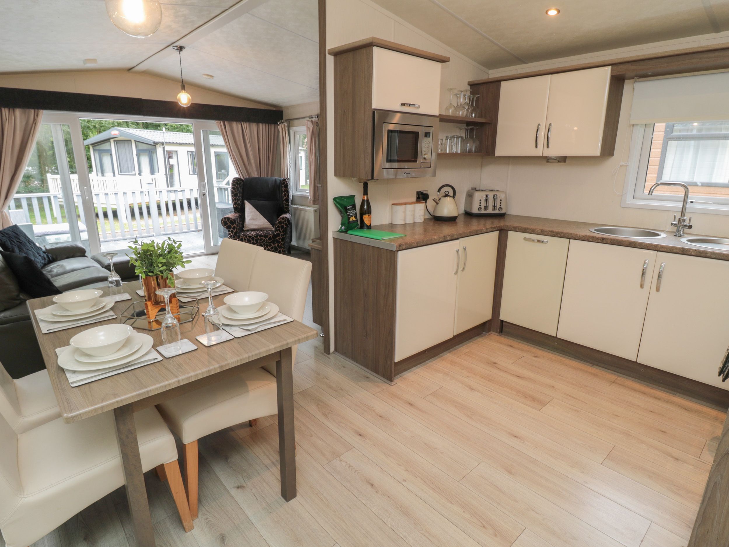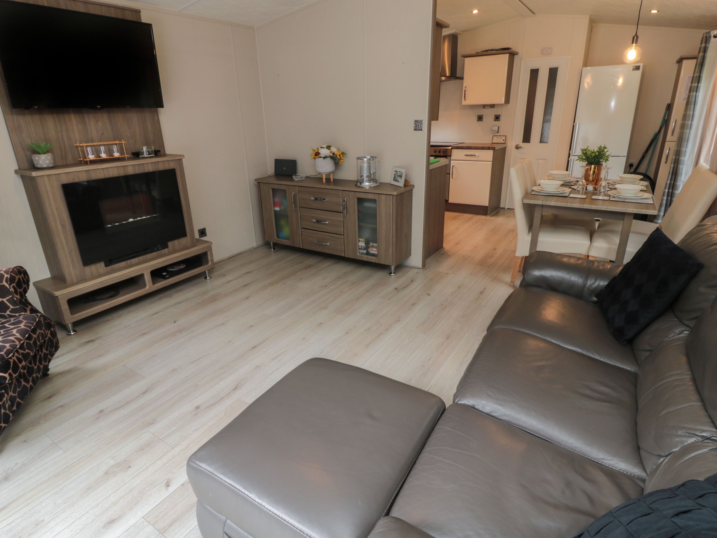 Holiday home Jax Retreat, a single-storey caravan, consists of an open-plan living space including a kitchen with gas oven and hob, microwave, fridge/freezer, washing machine, and dishwasher, a dining room with a dining table for four guests, and a sitting room with a smart TV and electric fire. The bedrooms consist of a double with an en-suite walk-in shower, and a twin. There is a bathroom with bath, shower over, basin, heated towel rail, and WC. Outside, there is an enclosed side decking with furniture, a partly-enclosed side lawn with hot tub and furniture, plus off-road parking for one car. Two well-behaved dogs welcome. Sorry, no smoking. Shop 2.9 miles, pub 0.7 miles. WiFi, fuel, power, bed linen and towels are all included in the price. Make memories with a stay at Jax Retreat. Note: Although this is a single-storey property, there are steps up to the entrance. Note: The single beds are two ft 6. Note: Children's park and free golf course on site.