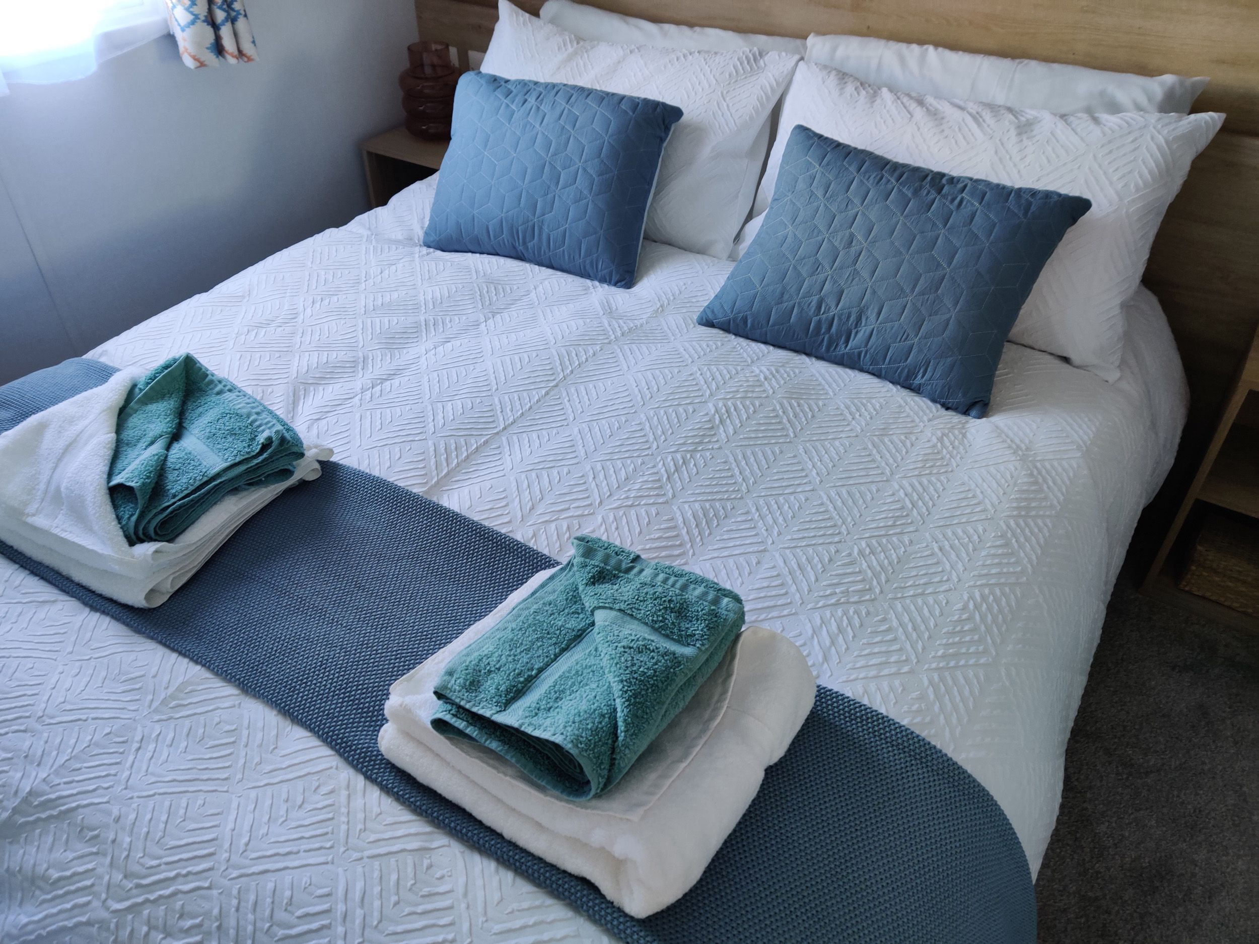 Accomodation Details Single-storey. Two bedrooms: 1 x king-size with en-suite cloakroom with basin and WC, 1 x twin. Bathroom with walk-in shower, basin, and WC. Open-plan living space with kitchen, dining area and sitting area with electric fire