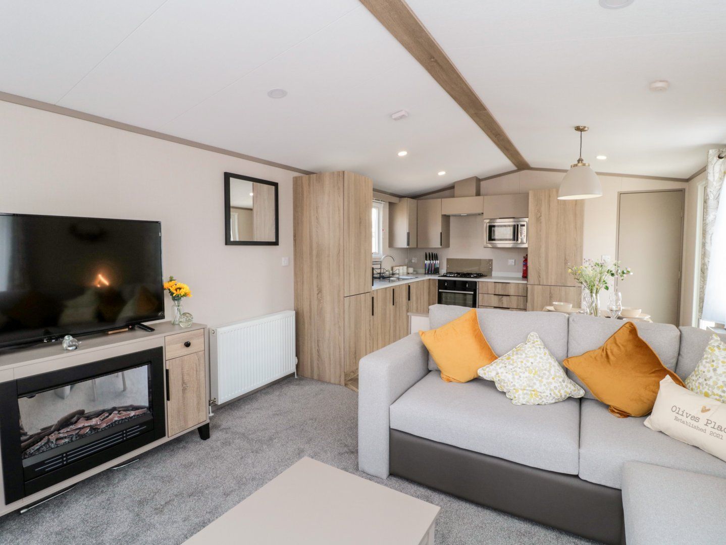 Holiday home The living area in the pet-friendly lodge is open-plan with a kitchen containing an electric oven, gas hob, microwave and fridge/freezer, a dining area for four, and a sitting area with a Smart TV, DVD player and electric fire. The bedrooms consist of a king-size with en-suite cloakroom and a twin, along with a shower room. Outside, there is a decking with a hot tub, furniture, barbecue and storage, and off-road parking for one car. Within 2.3 miles, there is a shop, and within 0.1, a pub. Two well-behaved dogs are welcome. Smoking is not permitted. WiFi, fuel, power, bed linen and towels are all included in the price. There are steps up to the property entrance. Guests have access to an on-site bar and children's play area. Olives Place welcomes a family of four to holiday in rural Northumberland.