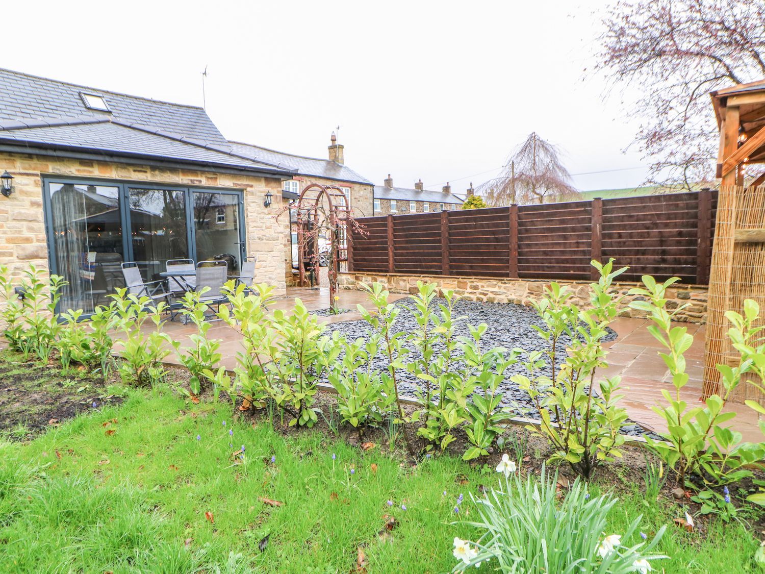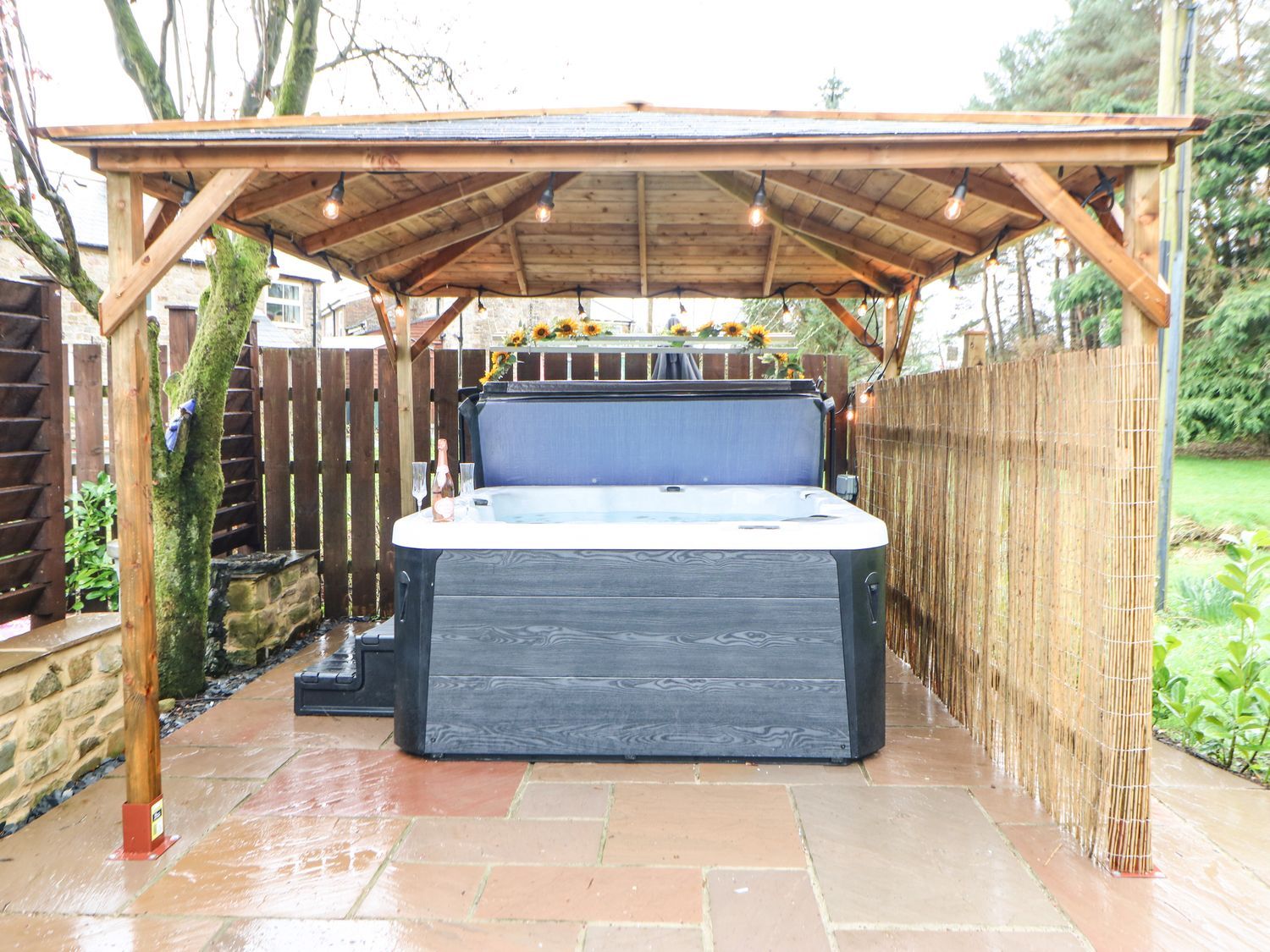 Amenities Gas central heating with partial underfloor heating. Electric oven and hob, microwave, fridge/freezer, dishwasher. TV, WiFi. Fuel and power inc. in rent. Bed linen and towels inc. in rent. Allocated, off-road parking for 1 car on shared driveway. Rear garden with patio, gravelled area, furniture, and hot tub. Sorry, no pets and no smoking. Shop 4.2 miles, pub 0.7 miles. Note: The hot tub might not be ready on the day of arrival due to cleaning.