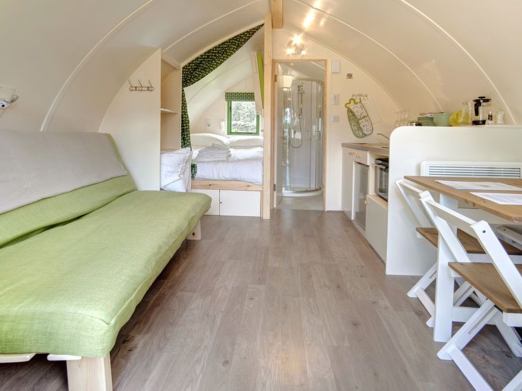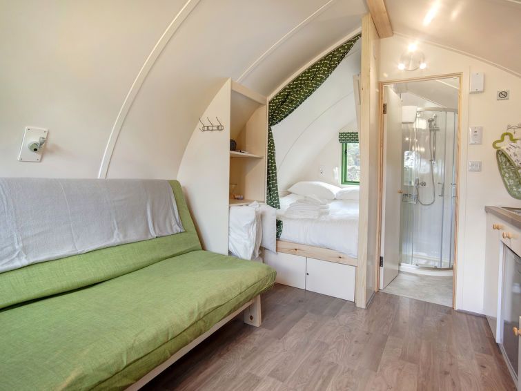 "Barebones Glamping", 2-room chalet 20 m2, on the ground floor. Object suitable for 4 adults + 1 child. Living room with 1 sofabed and 1 pull-out bed. 1 room with 1 bed and 1 double bed. Kitchen (oven, toaster, kettle). Shower/WC. Terrace. Barbecue. Facilities: Internet (WiFi, free).