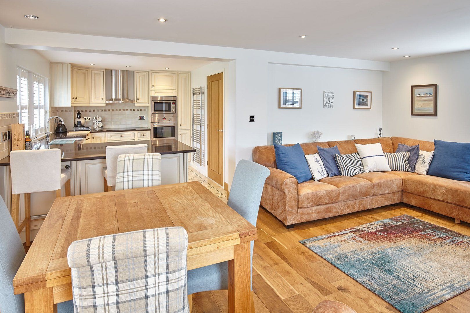 Every space has been designed with sociable families in mind. It’s open and inviting, with a beautiful kitchen that’s perfect for gathering around the kitchen island, preparing meals together as a group. The conservatory is another bright and homely space. It’s particularly lovely in the mornings with the sunlight pouring in through the ceiling windows while you savour a nice, hot coffee. Or, you can take your coffee out to the patioed garden and breathe in the fresh seaside air.