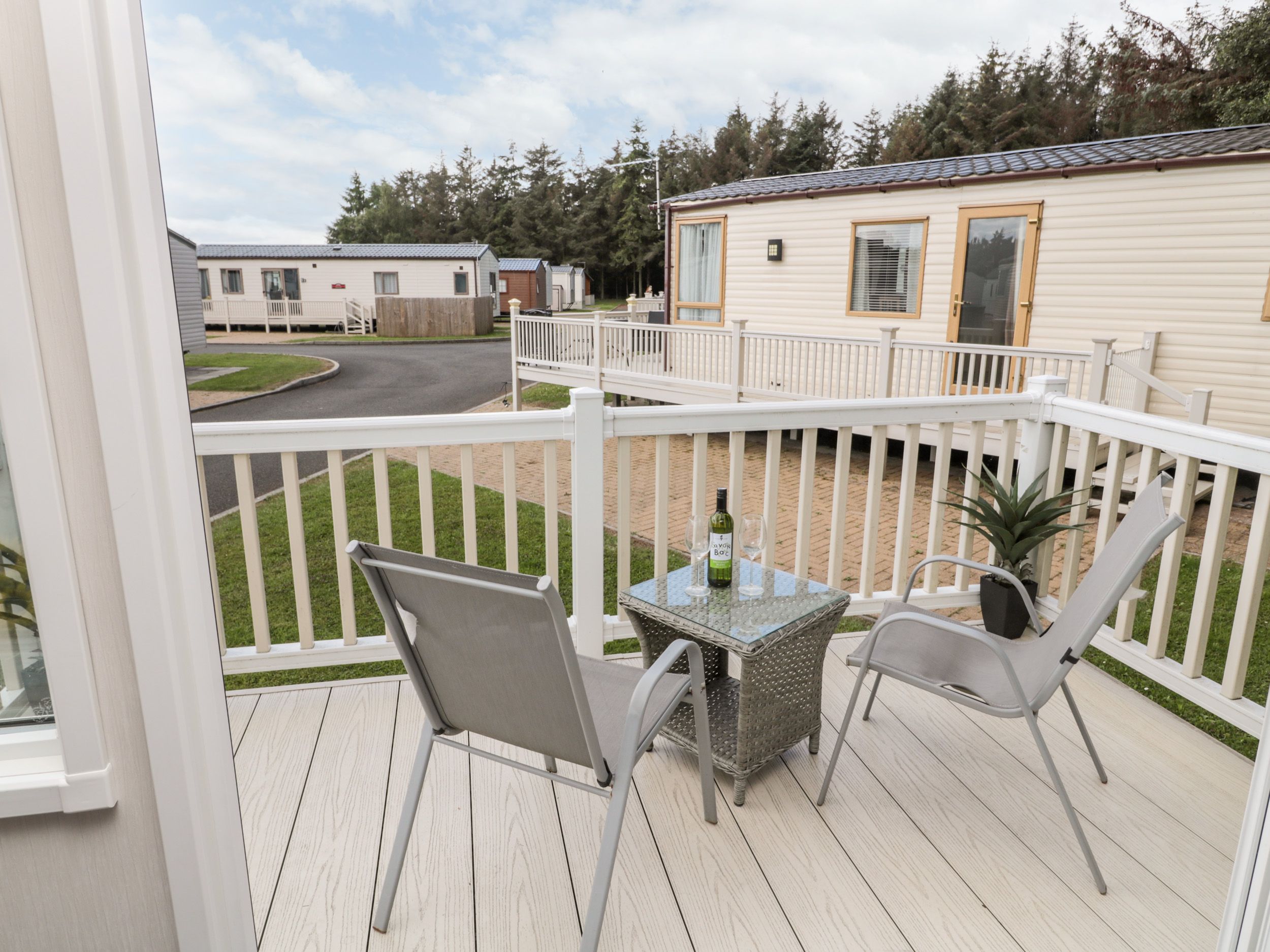 Holiday home The living areas in this holiday home consist of an open-plan living space with kitchen equipped with gas oven and hob, microwave, fridge/freezer and dining table and a sitting area with Smart TV. The bedrooms consist of a double and two twins serviced by a shower room and cloakroom. Outside there is off-road parking for one car and an enclosed decking with furniture and a side patio with furniture and hot tub. Within 0.7 miles you'll find a shop and a pub. Two well-behaved dogs are welcome. WiFi, fuel, power, bed linen and towels are all included in the price. Explore all Northumberland has to offer at Daisy's Retreat. Note: There are three steps up into the holiday home, please take care. Note: Guests have access to tennis courts and golf course. Note: One of the twin bedrooms is slightly smaller than the other.