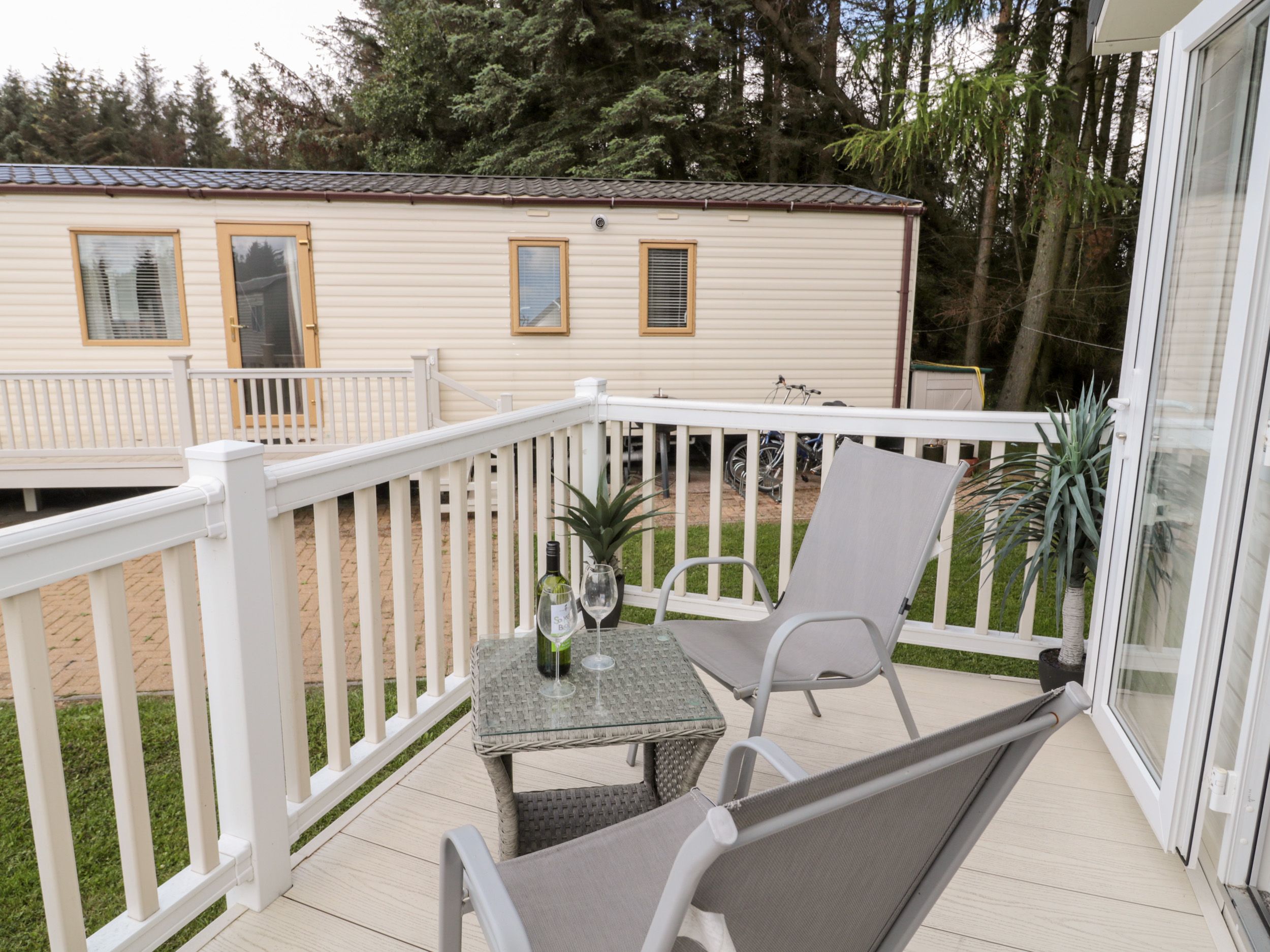 Amenities Gas central heating. Gas oven and hob, microwave and fridge/freezer. Smart TV and WiFi. Fuel and power inc. in rent. Bed linen and towels inc. in rent. Off-road parking for 1 car. Enclosed decking with furniture and enclosed, side patio with furniture and hot tub. Sorry, no smoking. Shop and pub 0.7 miles. Note: There are three steps up into the holiday home, please take care. Note: Guests have access to tennis courts and golf course. Note: One of the twin bedrooms is slightly smaller than the other