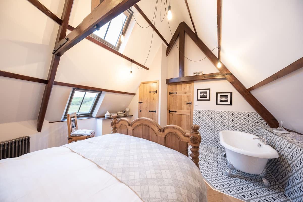 This charming building dates back to 1894, when it was built as part of Hexham Abbey. It was still being used as a place of worship until 2003, and then stood empty until its current owners gave it a new lease of life as a luxury holiday home. You'll find plenty of echoes of the past here, from the original brickwork on the exterior, to the wooden beams and impressive vaulted ceiling in the master bedroom. However, this home is firmly part of the present, and its recent restoration means that the interiors are classic yet contemporary. Curl up beside the wood-burning stove for a toasty night in, or run yourself a decadent bubble bath – the free-standing tub is a real gem. There's also an outdoor hot tub with fantastic views over the countryside, where you can soak to your heart's content. Walkers will be glad that both Northumberland National Park and the North Pennines are within a short drive of your front door. The market town of Hexham is only a five-minute car ride away, where you'll find quaint pubs, a weekly farmers' market and the historic abbey, one of the earliest seats of Christianity in England. And, when you return home, don't forget to do some stargazing – your hosts have even provided a telescope.