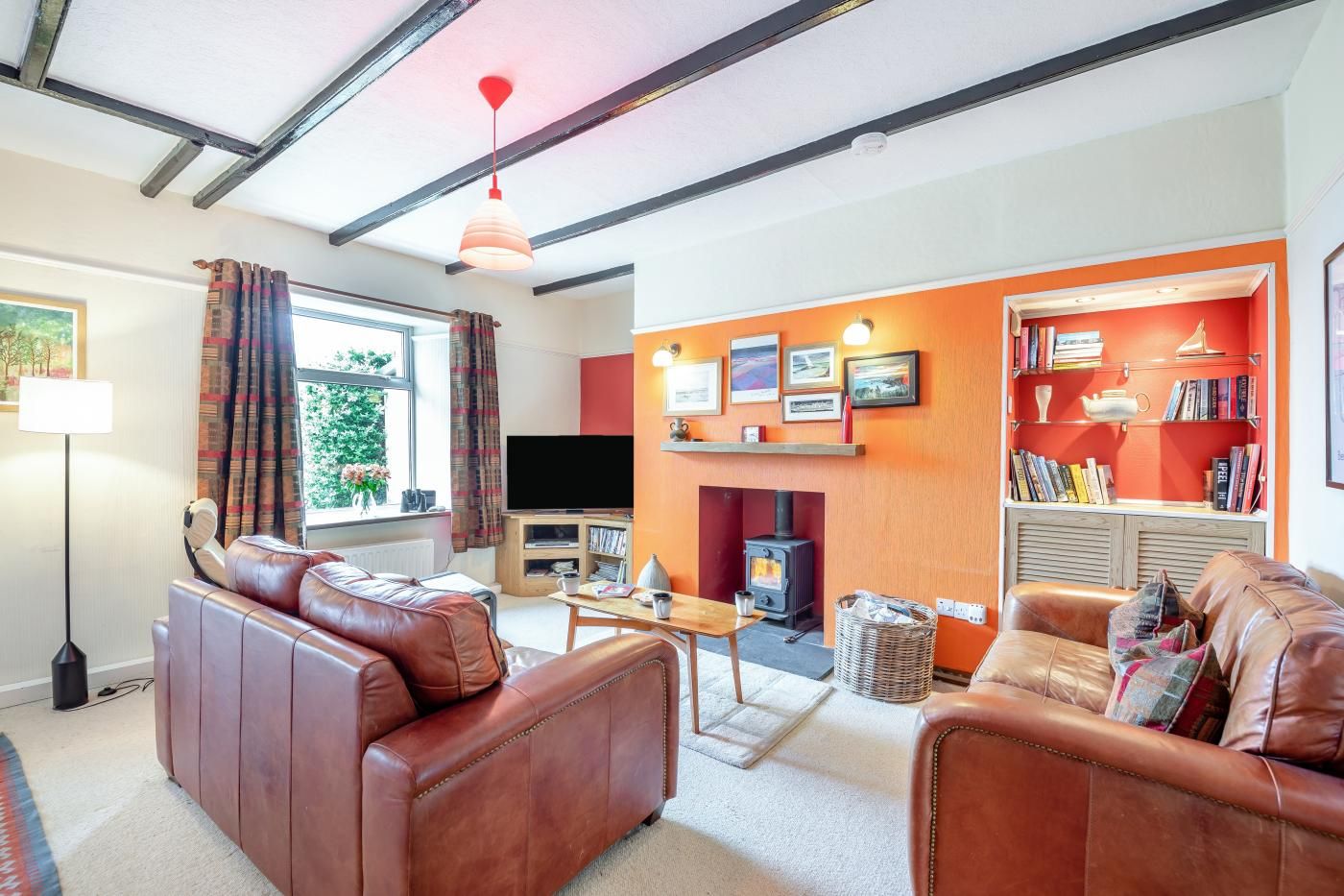 Inside, the cottage combines comfort and character, with a spacious lounge featuring a wood-burning stove and upright piano, a well-equipped kitchen, a bright conservatory, two inviting ground floor bedrooms, and a modern shower room.