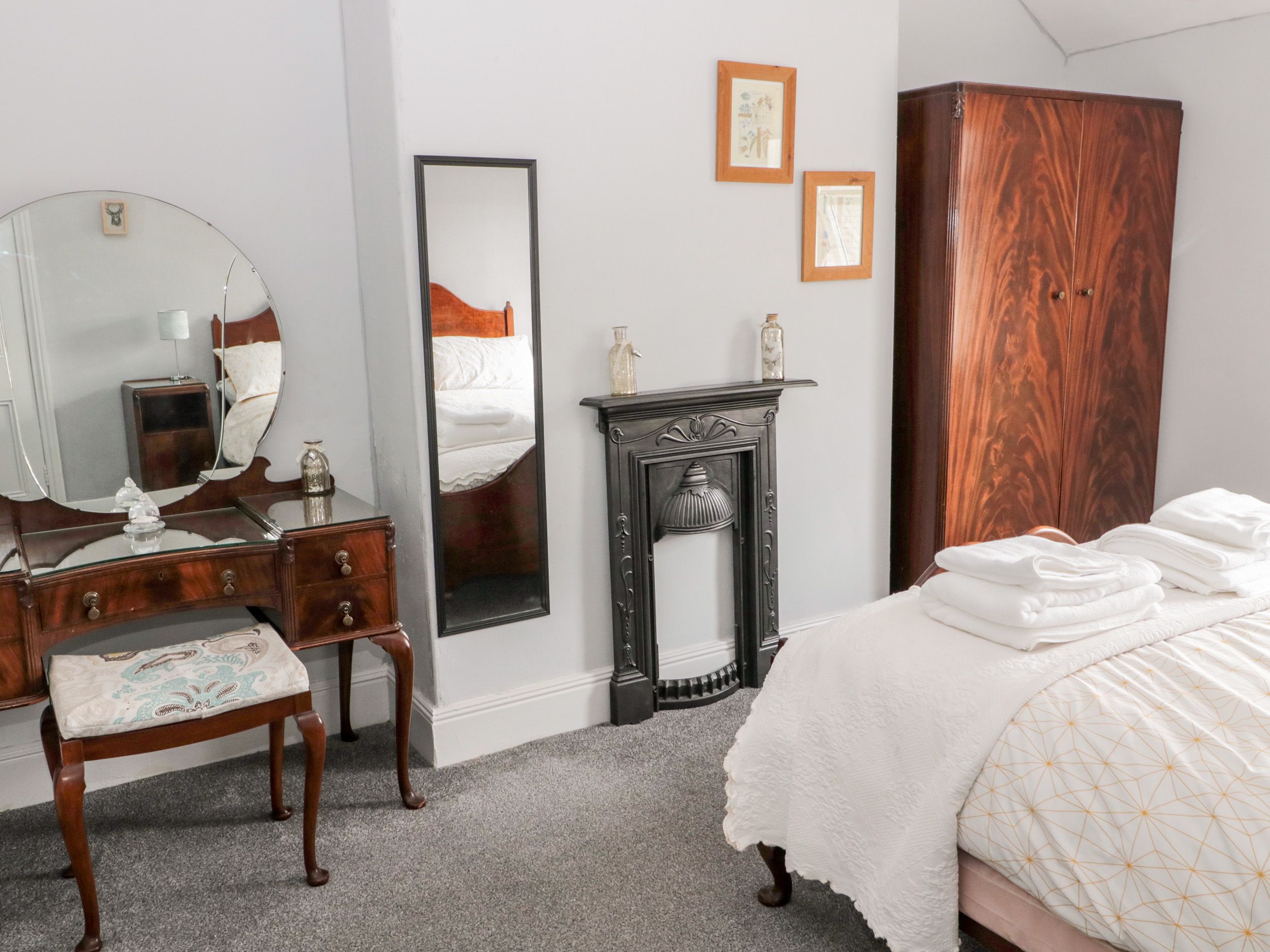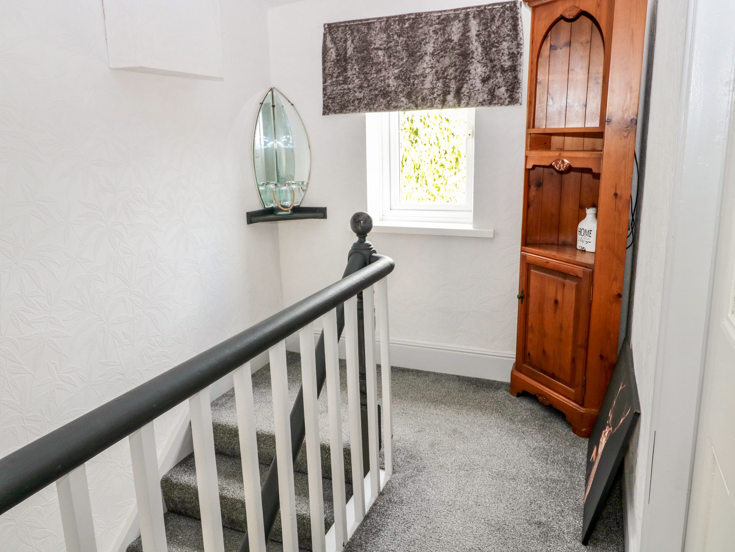 Three bedrooms: 2 x double, 1 x single. Ground-floor bathroom with bath, handheld shower, basin and WC. Kitchen/diner. Sitting room with electric fire. Conservatory