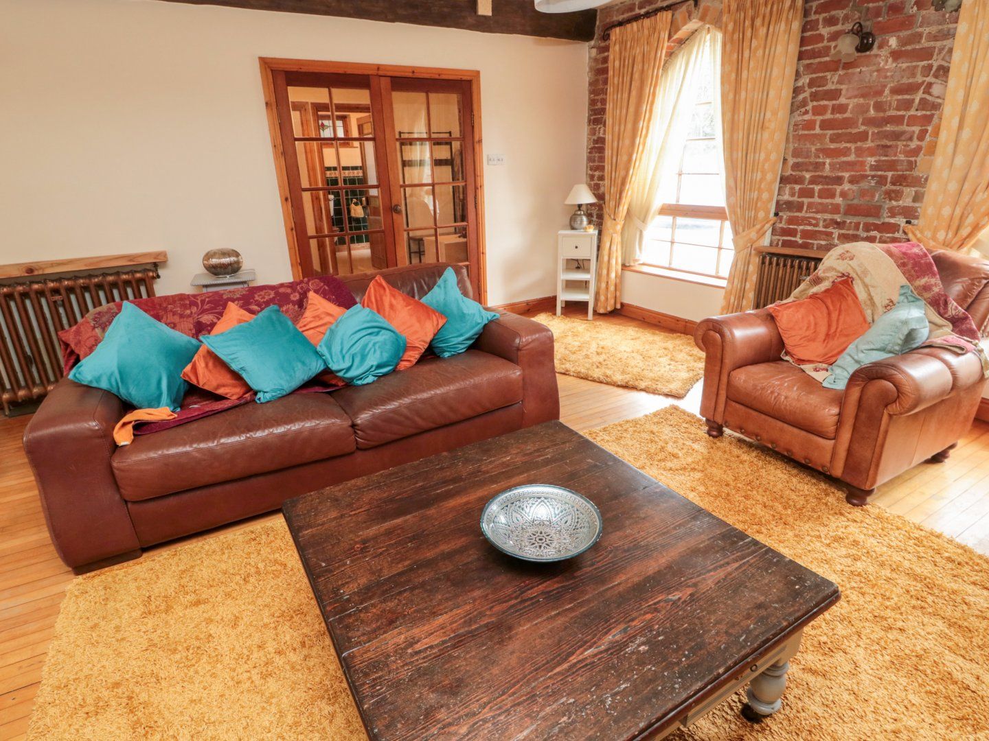 The living areas in this ground-floor apartment consist of a kitchen with an electric oven and hob, microwave, fridge, washing machine and dishwasher, and a living/dining room with TV with Freeview. The bedrooms consist of two king-size rooms, one with zip/link features, serviced by a bathroom. Outside there is a rear courtyard with furniture, and designated parking for two cars. One well-behaved dog welcomed, but sorry, no smoking. WiFi, fuel, power, bed linen and towels are all included in the price, along with a highchair. You'll find a shop and the river in 0.3 miles, and a pub in 0.2 miles. Bolland Hall is a charming base for a Northumberland escape. Note: Access to the parking is tight; please take care. Note: A children's nursery is located above the apartment; some noise may be heard in the daytime. Note: The property rests on a main road. Note: The spiral staircase is out of bounds.