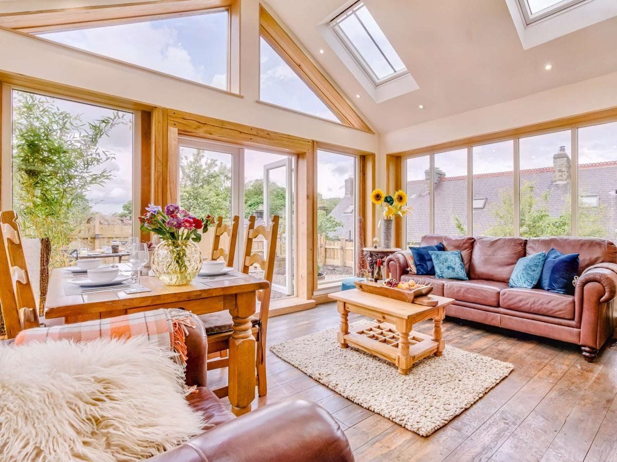 This wonderful home is packed full of unique features alongside stylish, contemporary finishes. Stepping into the lofty open-plan lounge/diner, exposed beams fly overhead with gorgeous wooden flooring underfoot, and a double-sided wood burner warms both this room and the cosy snug adjacent.