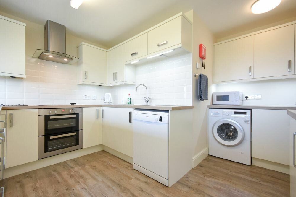 Kitchen with ceramic hob, electric double oven, dishwasher, fridge, freezer, washing machine and microwave. Sharing the panoramic views with the dining area.