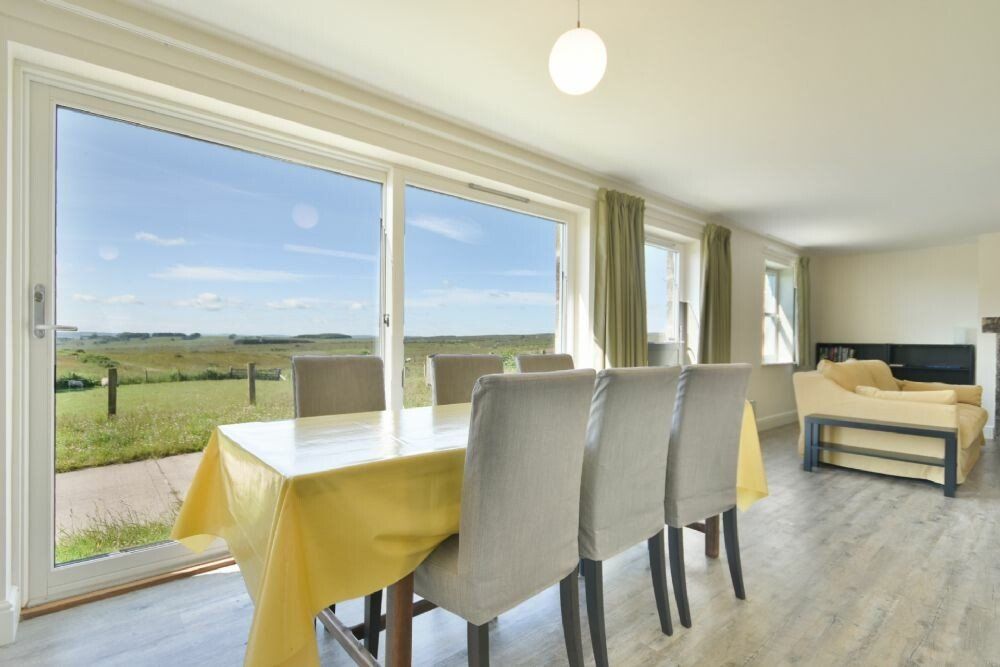 Lounge/dining room with comfortable seating, feature inglenook fireplace with LG Smart TV with Netflix, (guests to use their own accounts), table and chairs for 6 guests and panoramic views.