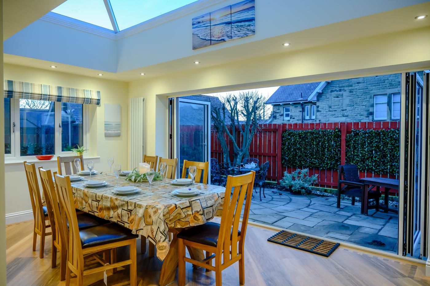This stone-built, contemporary four-bedroom property boasts a games room and distant sea views, nestled in a quiet spot in North Sunderland close to the heart of Seahouses.