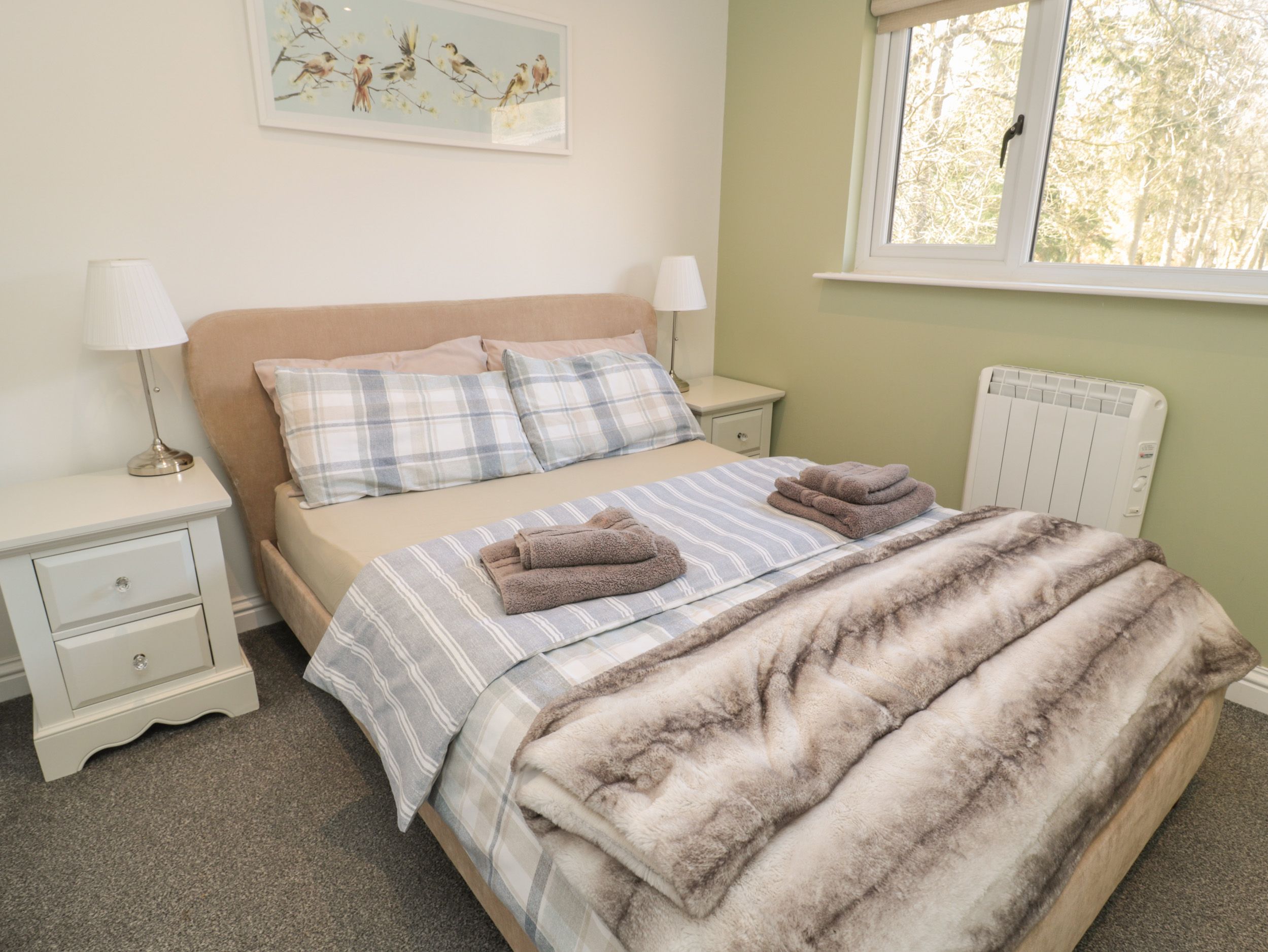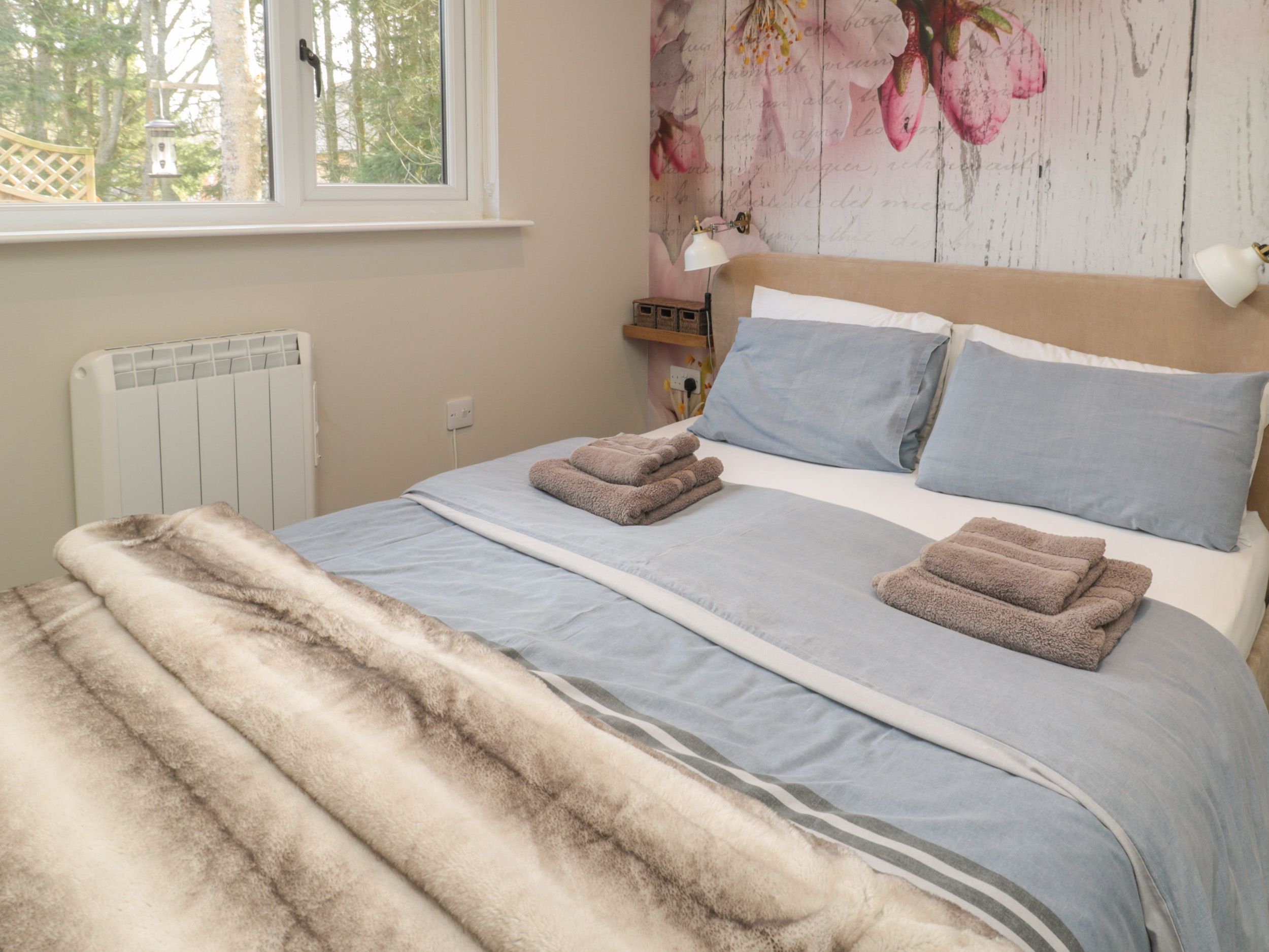 Amenities Electric central heating. Electric oven and hob, microwave, fridge/freezer, dishwasher, washing machine. Freeview Smart TV, Netflix, WiFi. Fuel and power inc. in rent. Bed linen and towels inc. in rent. Highchair and travel cot available on request. Off-road parking for two cars. Private decking with hot tub and seating. One well-behaved dog welcome. Sorry, no smoking. Shop 1.1 miles, pub 0.2 miles. Note: Barbecues and fireworks are not permitted on-site. Note: There are 5 steps up to the decking. Note: The property is set within 500-acres of woodland grounds shared with other guests. Note: There is an unfenced lake in the grounds. Note: Aug 2020 this property has now been fitted with a new kitchen.