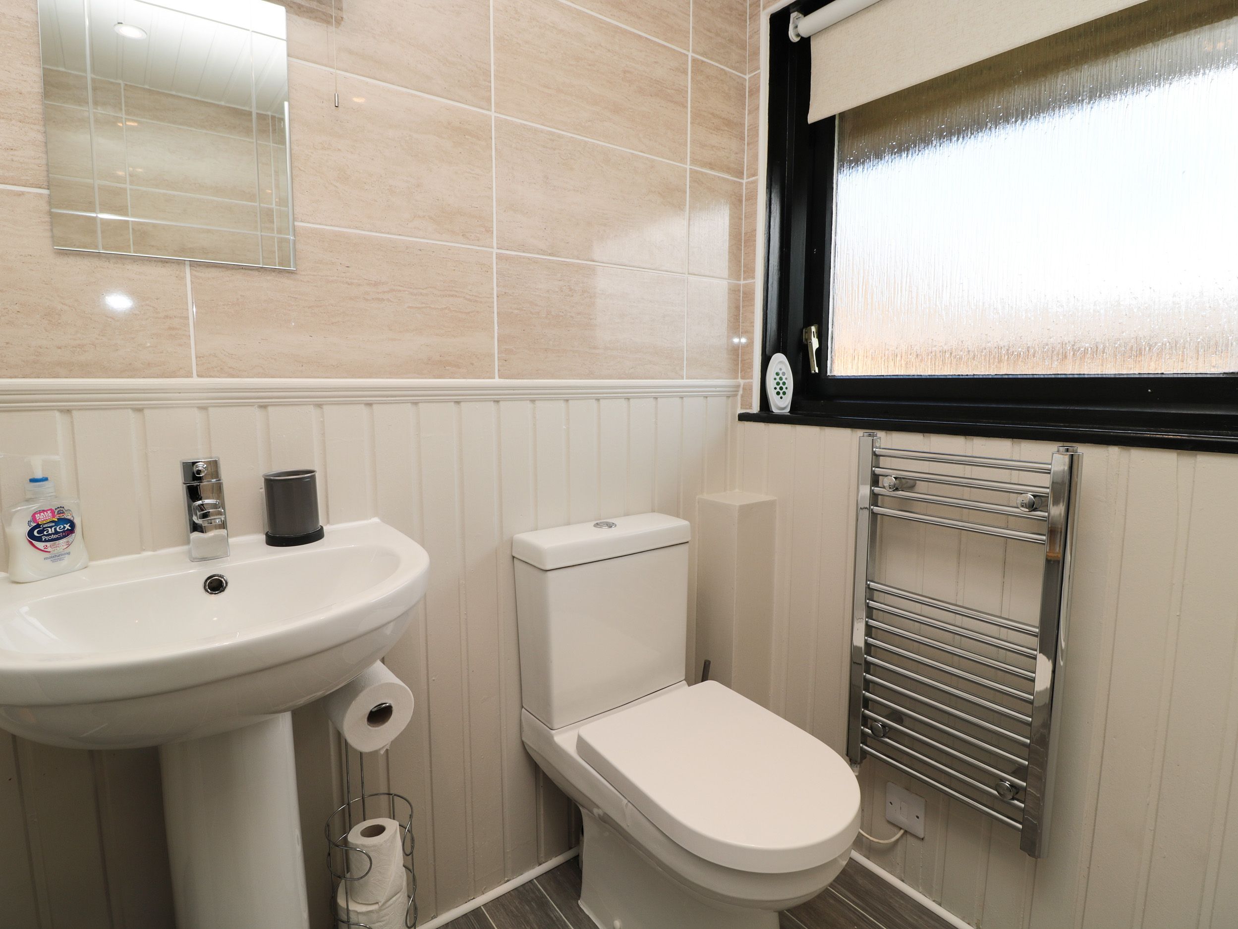 Accomodation Details All-ground-floor. Three bedrooms: 1 x double with en-suite shower, basin, heated towel rail, and WC, 1 x double, 1 x bunk room. Bathroom with P-shape bath, shower over, basin, heated towel rail and WC. Open-plan living space with kitchen, dining area and sitting area