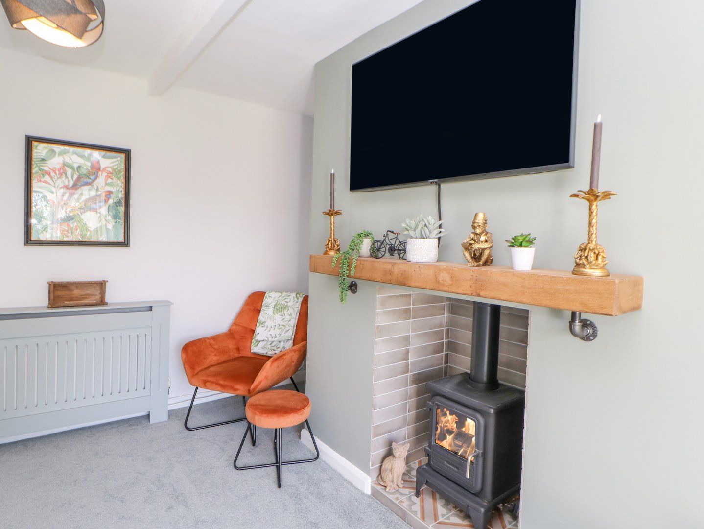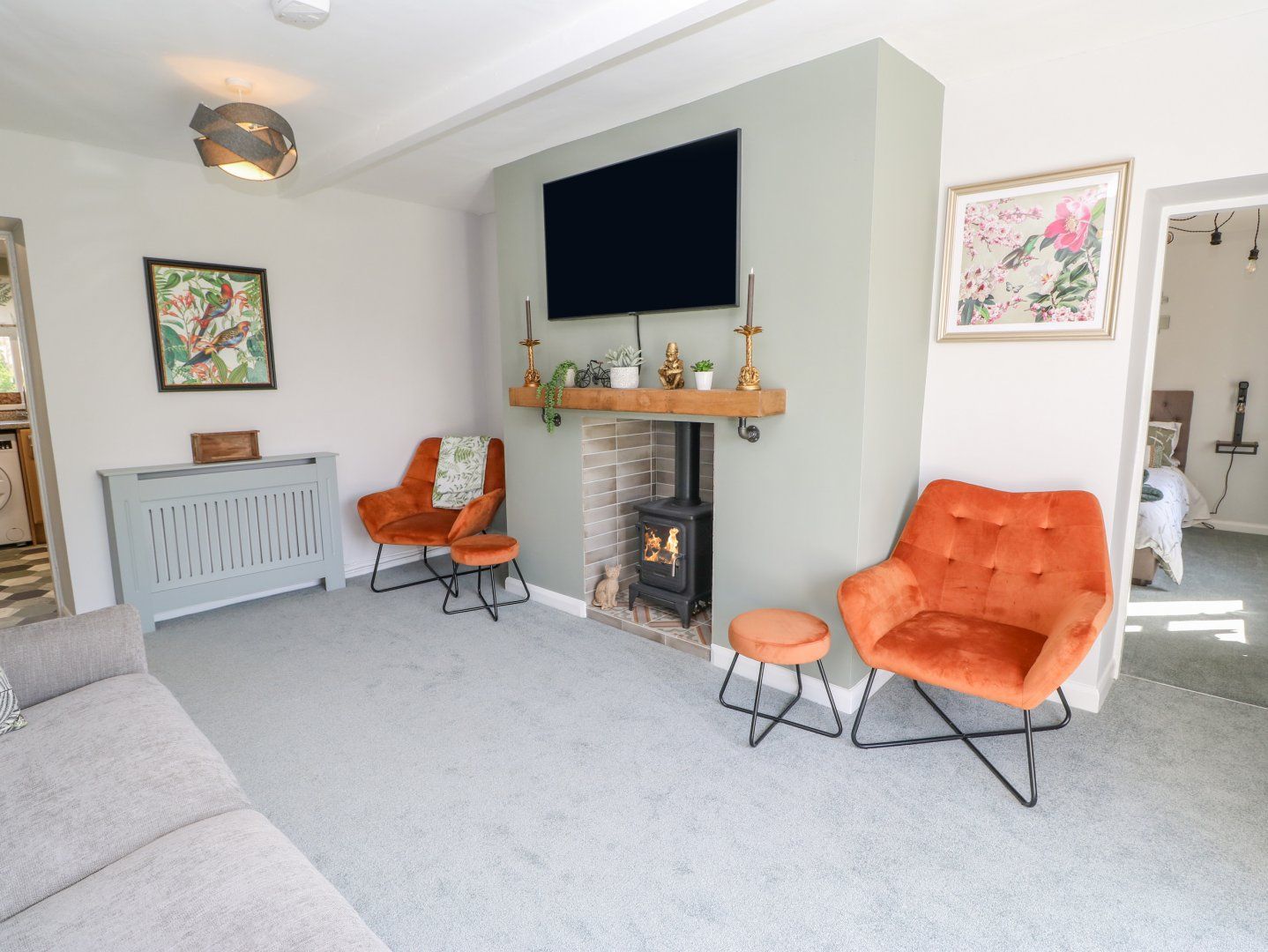 Amenities Oil central heating with gas effect log burner. Electric oven and hob, microwave, air fryer, fridge/freezer, washing machine and dishwasher. TV, WiFi. Fuel and power inc. in rent. Bed linen and towels inc. in rent. Highchair available on request. Off-road parking for 3 cars. Rear garden with lawn, decking, furniture, and picnic bench. One well-behaved dog welcome. Sorry, no smoking. Shop 3 miles, pub 1.7 miles. Note: The property is located on the grounds of a working farm. Note: Dogs should be kept on their leads whilst outside of the cottage except in the garden