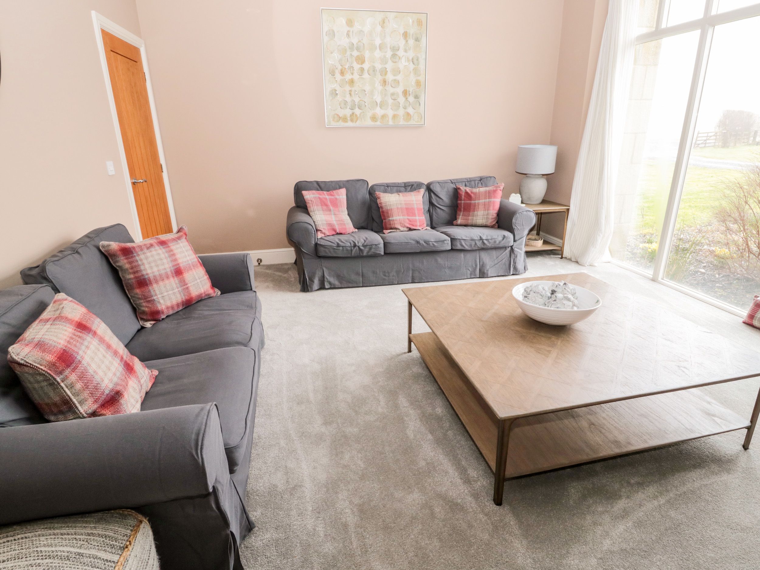Holiday home Fontburn Farmhouse is an outstanding, detached cottage resting in Ewesley near Rothbury, Northumberland. Hosting five bedrooms including a king-size with en-suite bathroom, two ground-floor doubles with en-suite shower rooms, as well as two twin bedrooms, along with a shower room and cloakroom, this property can sleep up to 10 guests. There is also an open-plan living space with a kitchen, dining area and sitting area with woodburning stove, a utility room, and a sitting room with woodburning stove. Outside there is private parking and a rear enclosed garden with furniture. Fontburn Farmhouse is a stunning abode, ideal for a rural retreat.
