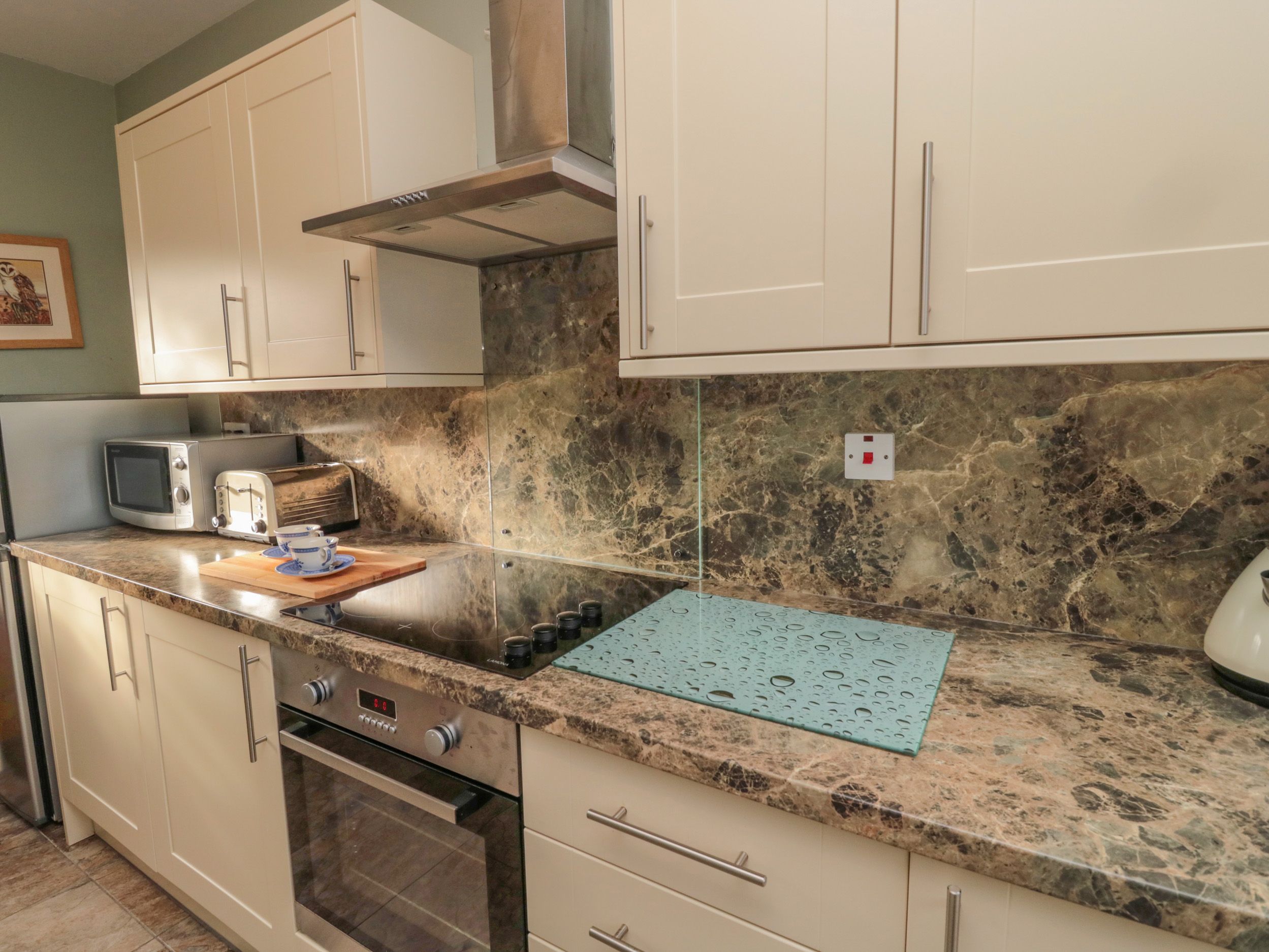 Amenities Gas central heating. Electric oven and hob, microwave, fridge/freezer, toaster, kettle, dishwasher, washing machine, tumble dryer, TV and WiFi. Fuel and power inc. in rent. Bed linen and towels inc. in rent. Off-road parking. Patio area with furniture. One well-behaved pet welcome. Sorry, no smoking. Shop and pub 2.8 miles.