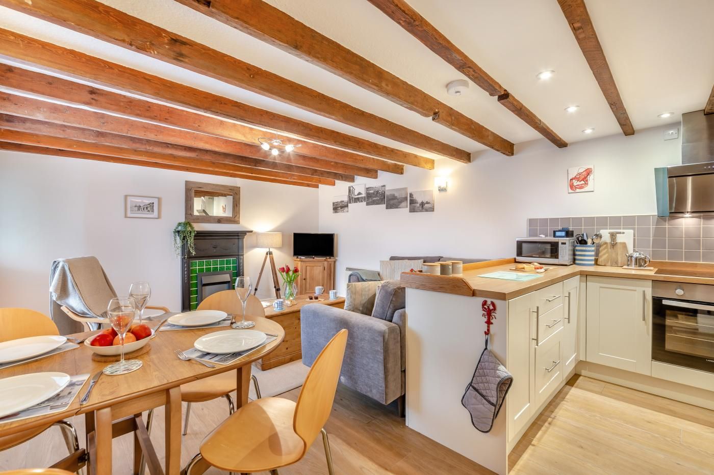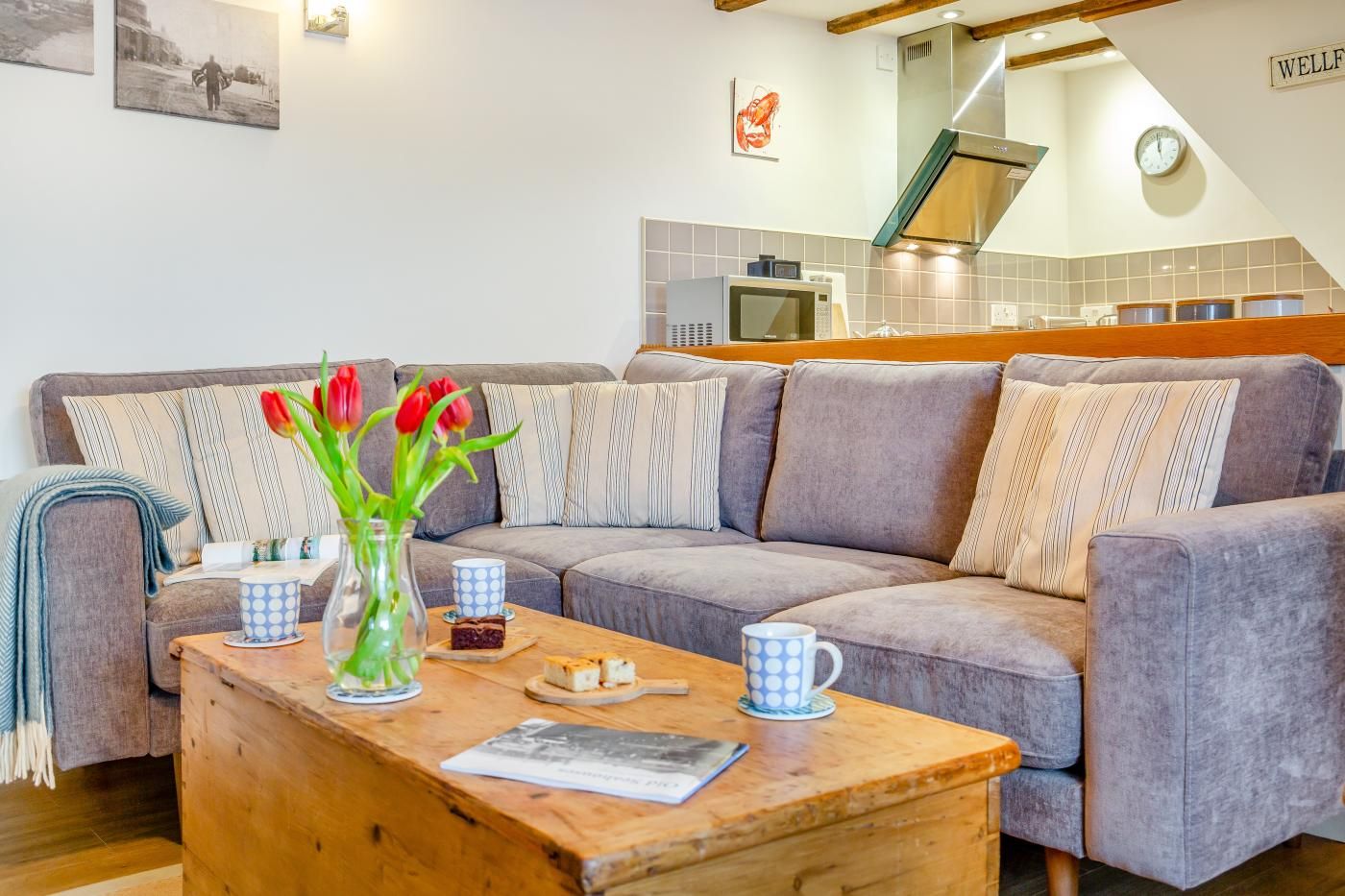This contemporary hideaway is perfect for families and friends seeking a chic seaside retreat. Amble through the pretty streets and visit the local shops and cafes or indulge in a traditional pub lunch, 250 metres away.